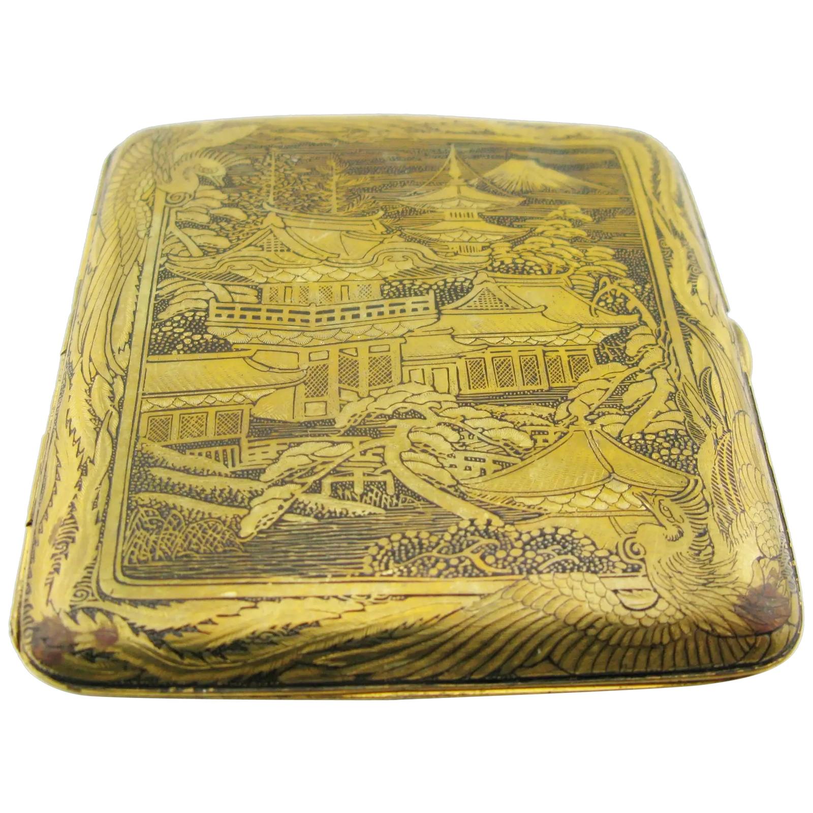 Fujii Yoshitoyo Antique Komai-style Damascene Cigarette Case