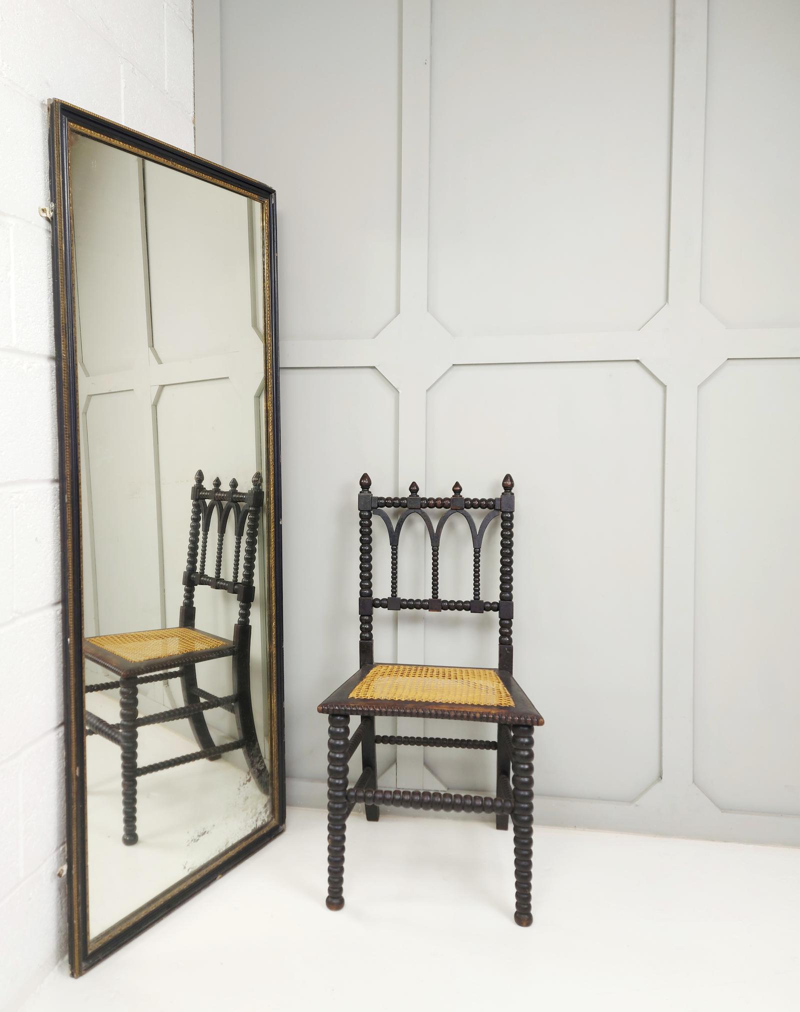 Full Length Ebonised Drapers Mirror with Gilt Detail