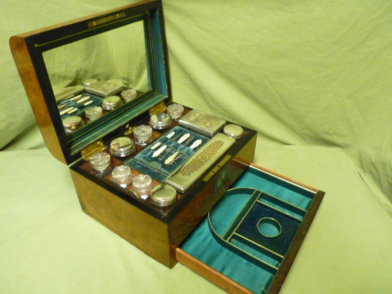Fully Fitted Burr Walnut Vanity / Dressing / Jewellery Box c.1865