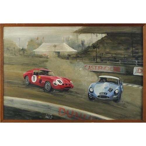 G A Pookson '63 - 1960's Jaguar Racing Cars on Motor Circuit, Watercolour & Gouache