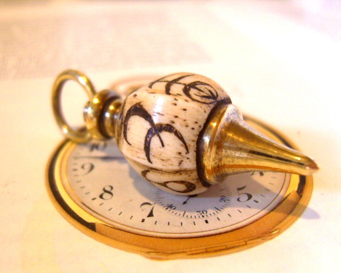 Gambling Fob Spinner Victorian 1890s Antique Large Brass Pocket Watch Chain Fob