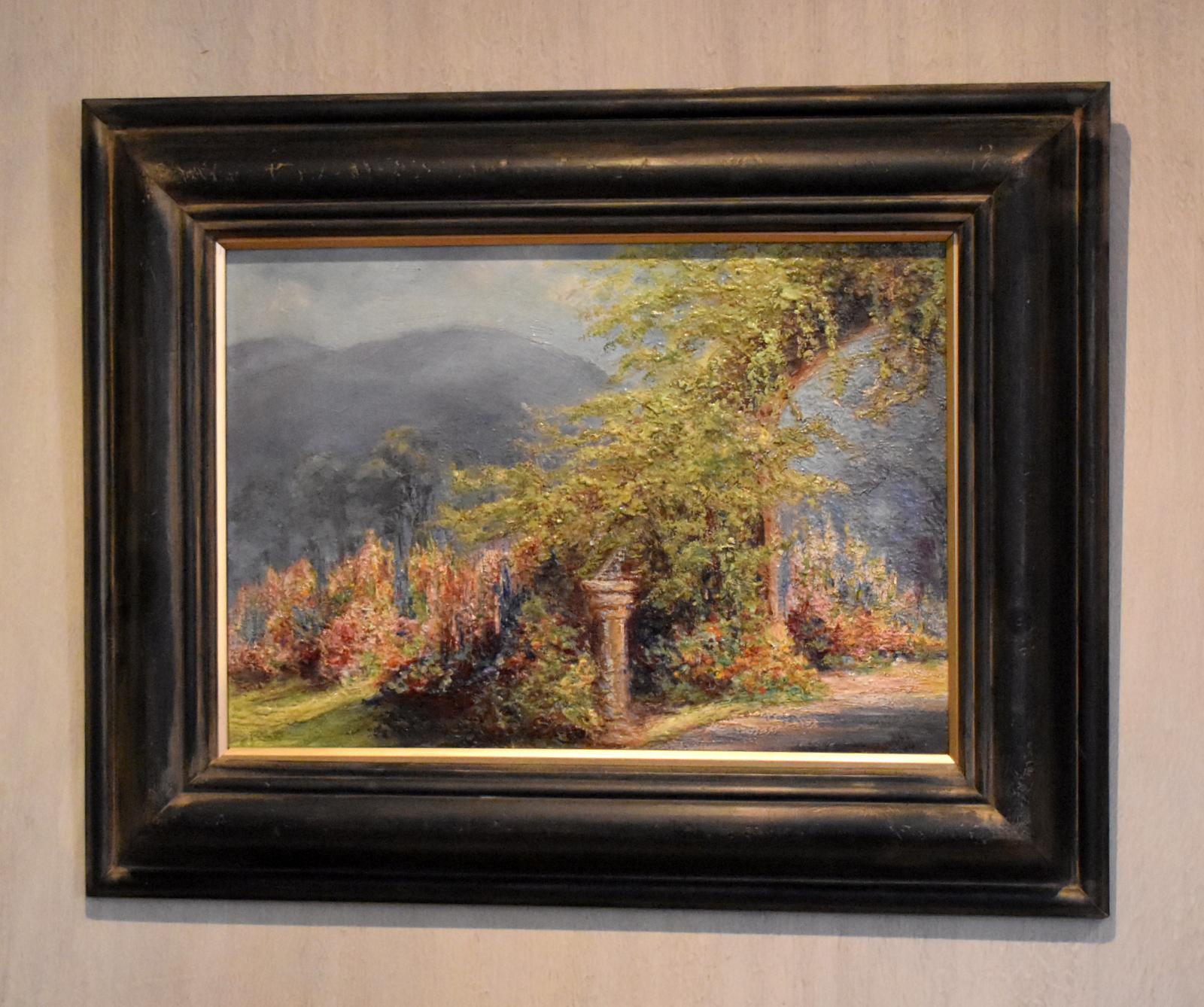 Garden scene oil painting by V. Rawlins (1 of 7)
