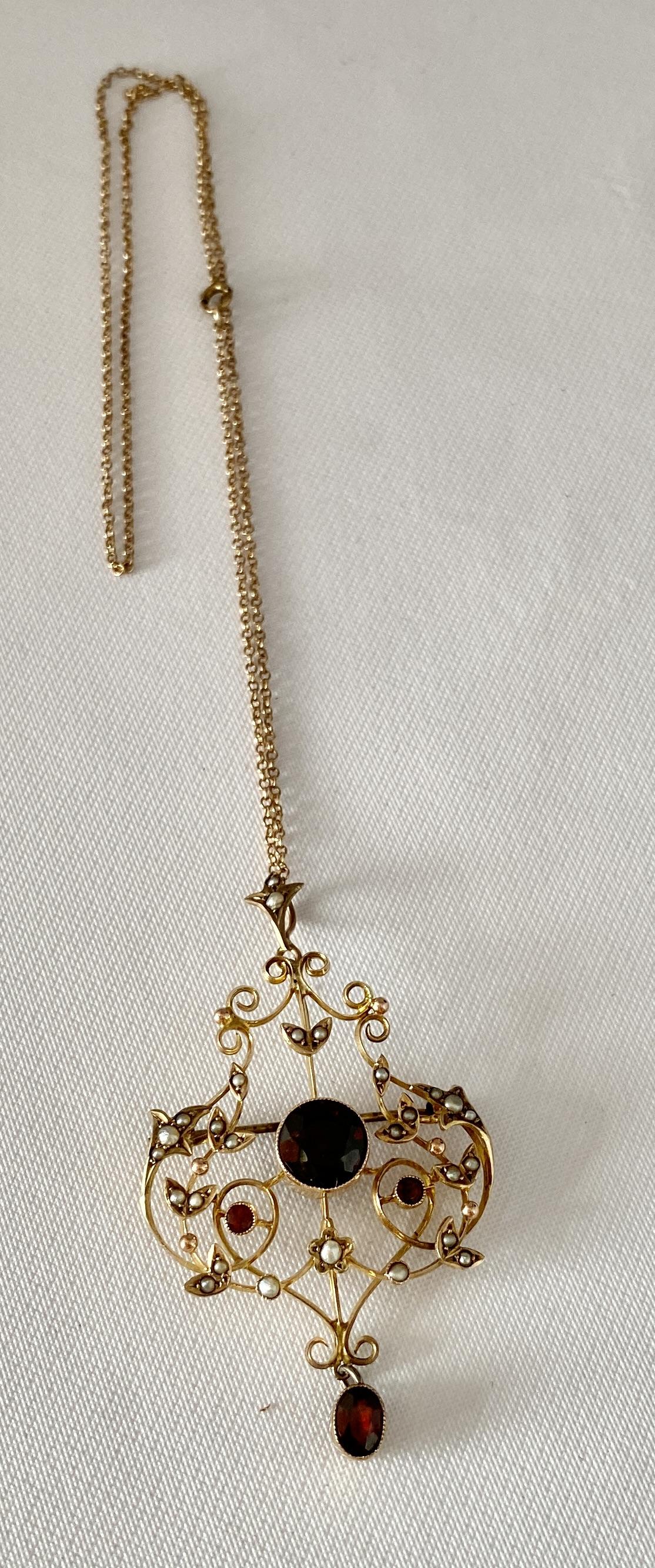 Garnet & Seed Pearl 9ct Pendant Brooch c.1905