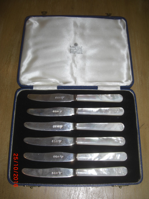 Garrard & Co Mother of Pearl & Silver Butter Knives