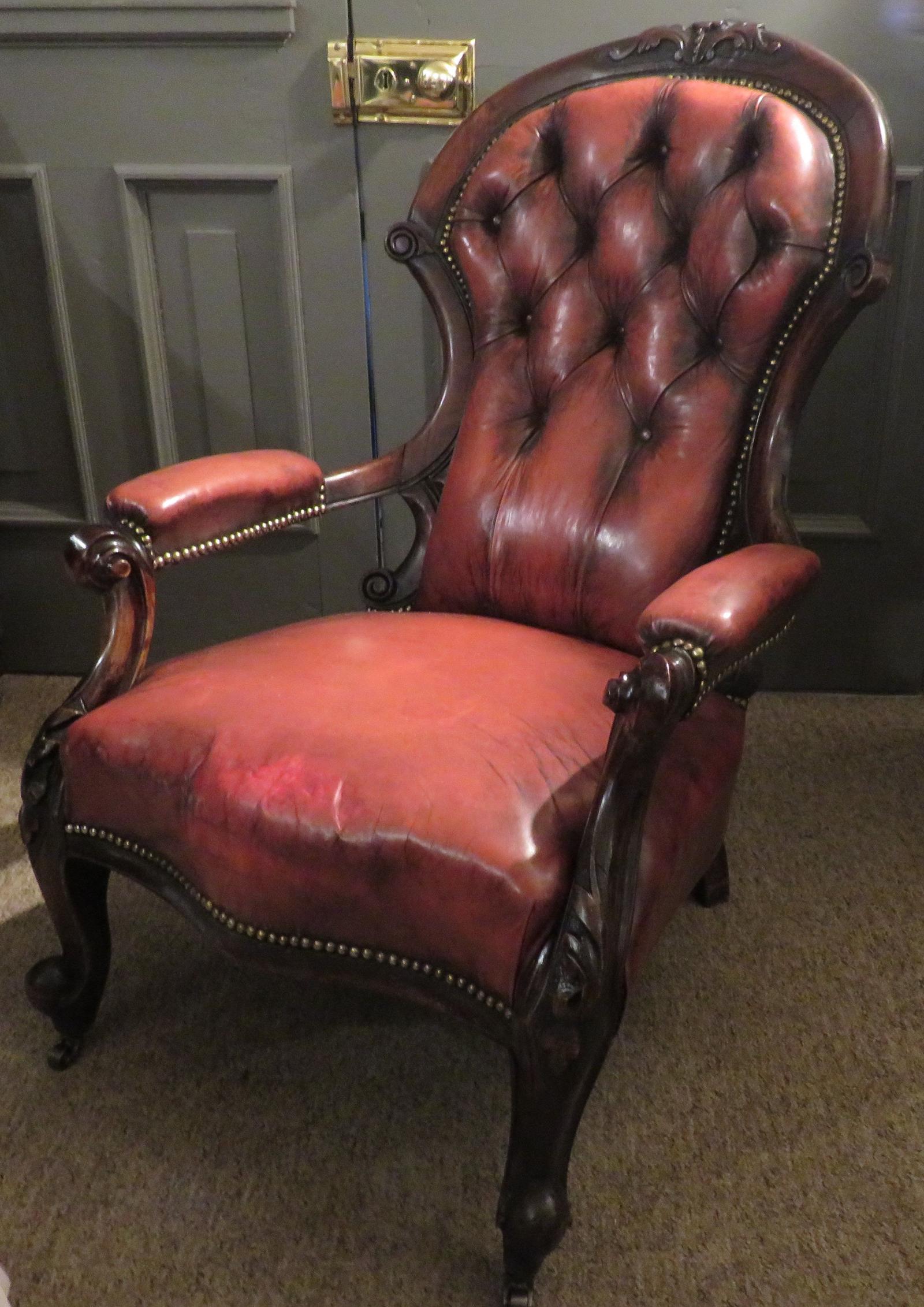 Gentlemans Armchair Red Leather Deep Buttoned c.1880