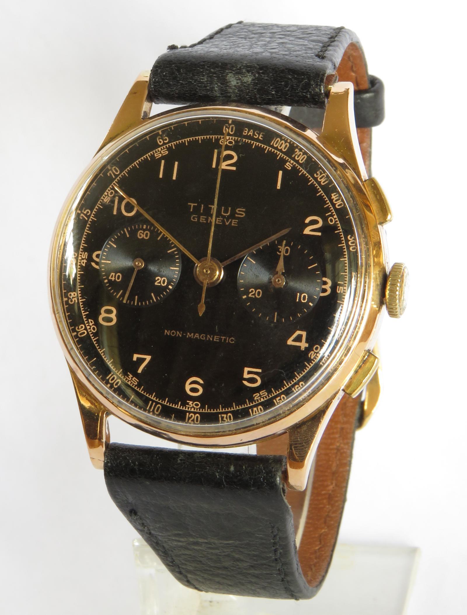 Gents 1940s Titus 18ct Rose Gold Chronograph Watch