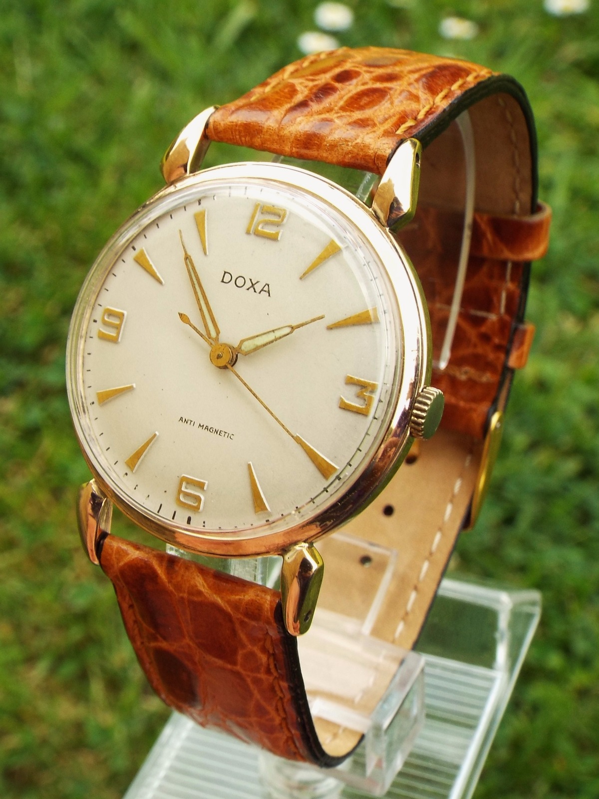 Gents 1950s 14ct Rose Gold Doxa Wrist Watch