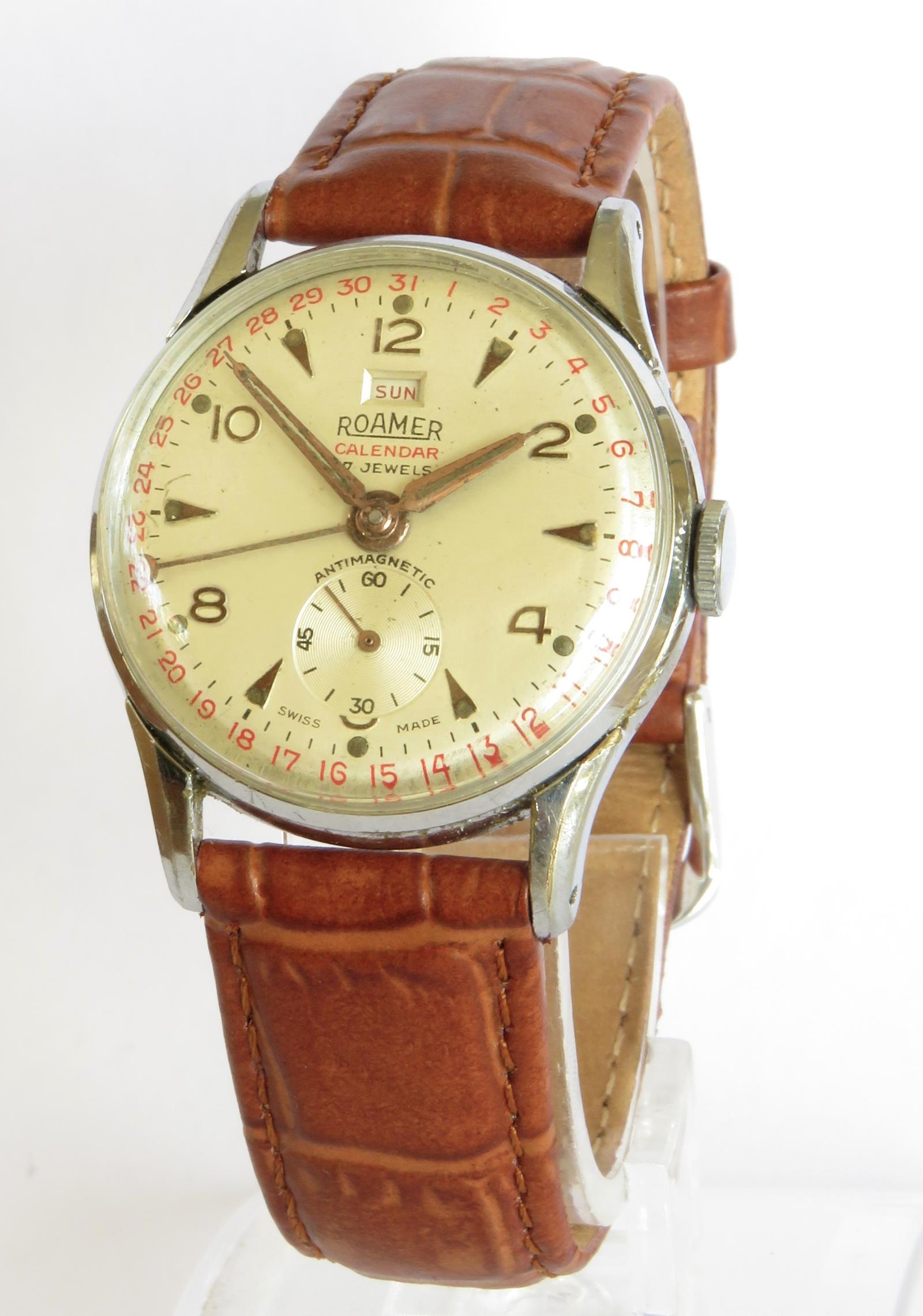 Gents 1950s Roamer Calendar Wrist Watch