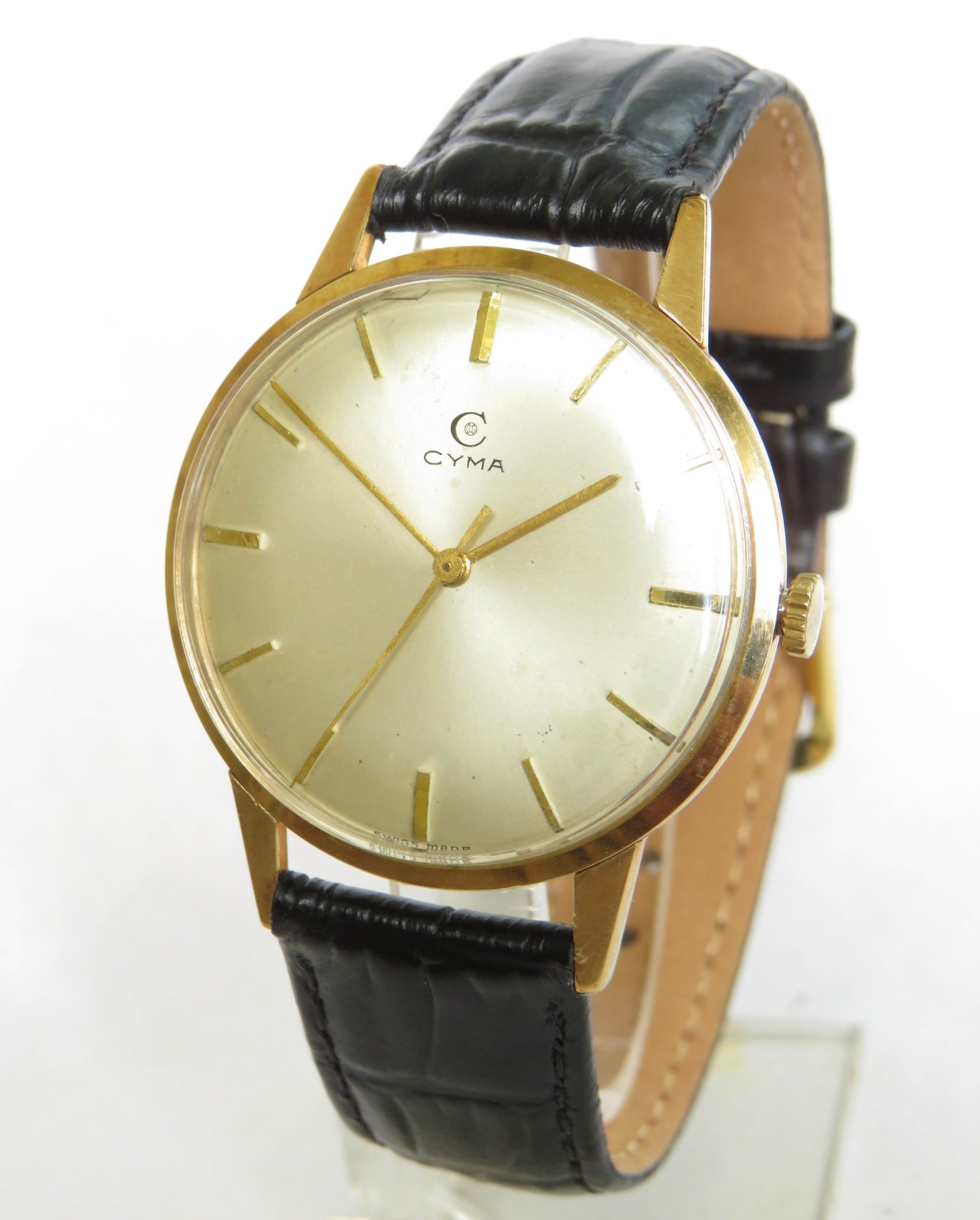 Gents 9 Carat Gold Cyma Wrist Watch, 1966