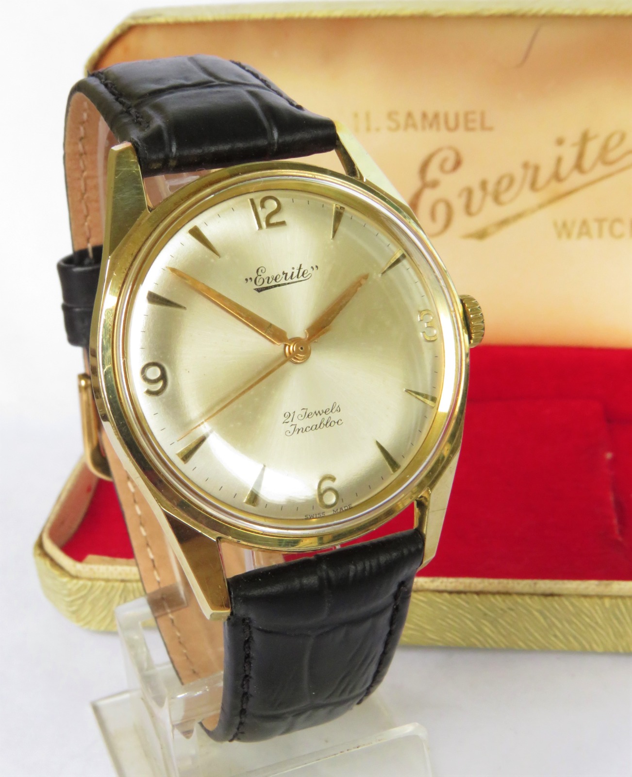 Gents 9 Carat Gold Everite Wrist Watch, 1961