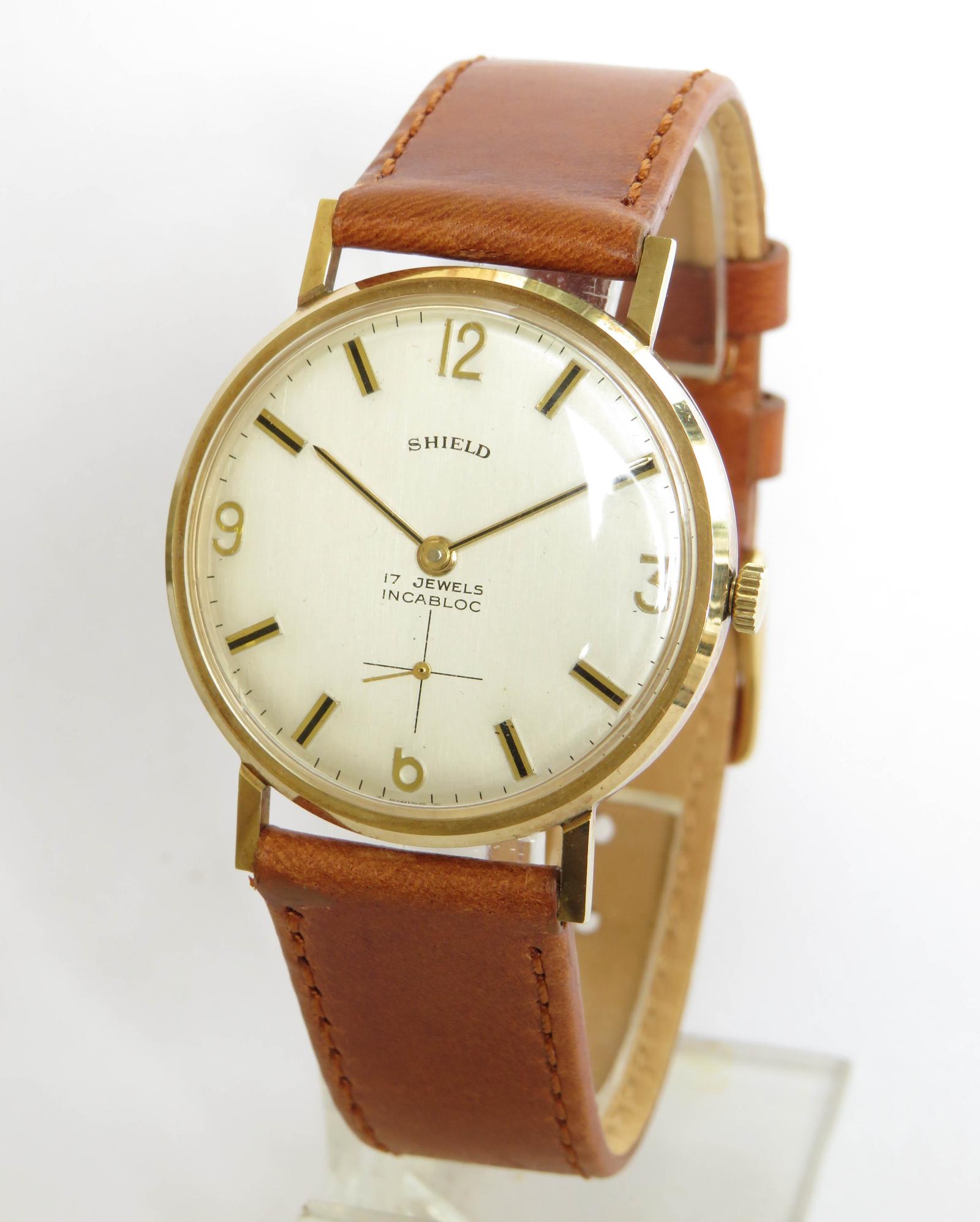 Gents 9 Carat Gold Shield Wrist Watch