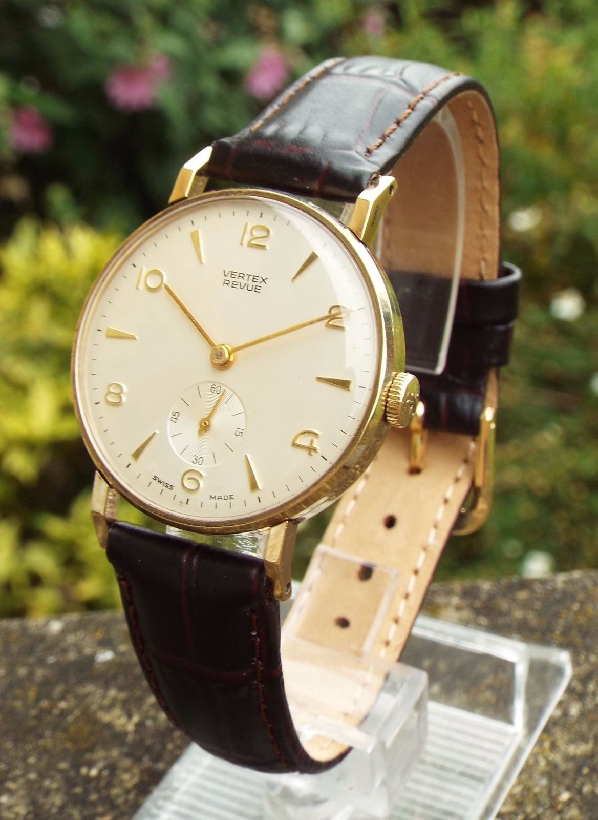 Gents 9 Carat Gold Vertex Revue Wrist Watch, 1965