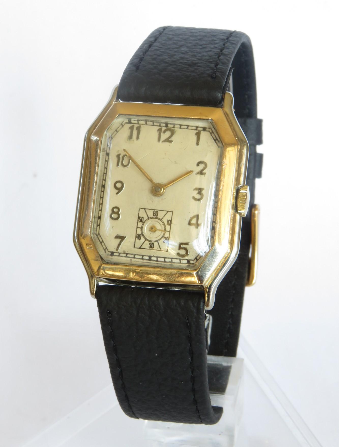 Gents 9ct Gold Art Deco Wrist Watch, 1930