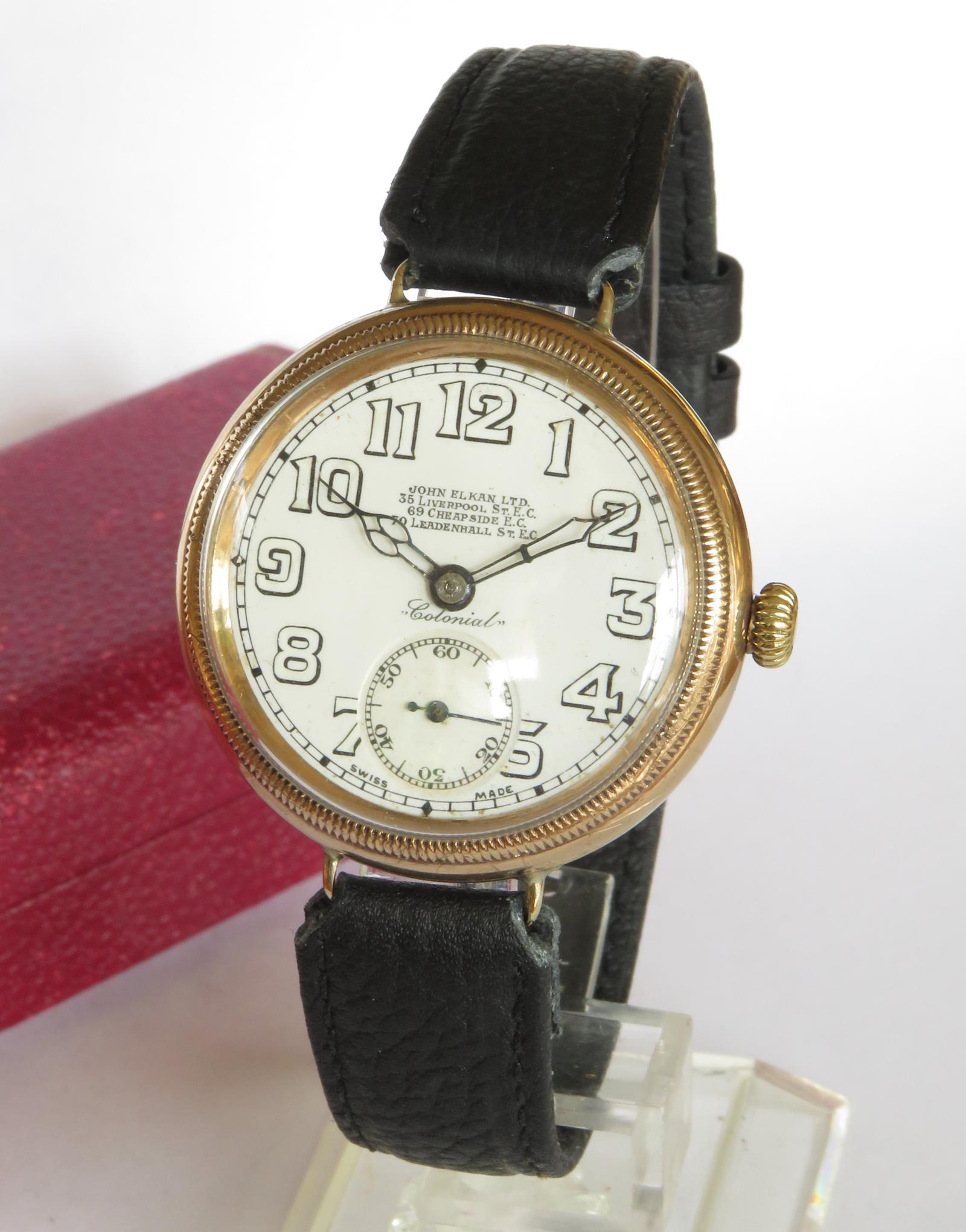 Gents 9ct Gold Colonial Wrist Watch, John Elkan