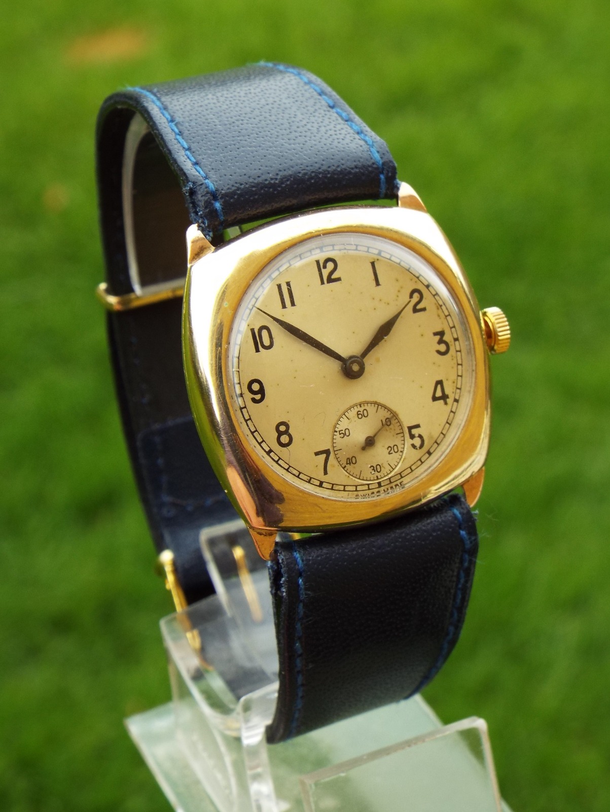 Gents 9ct Gold Cushion Cased Wristwatch, 1940s