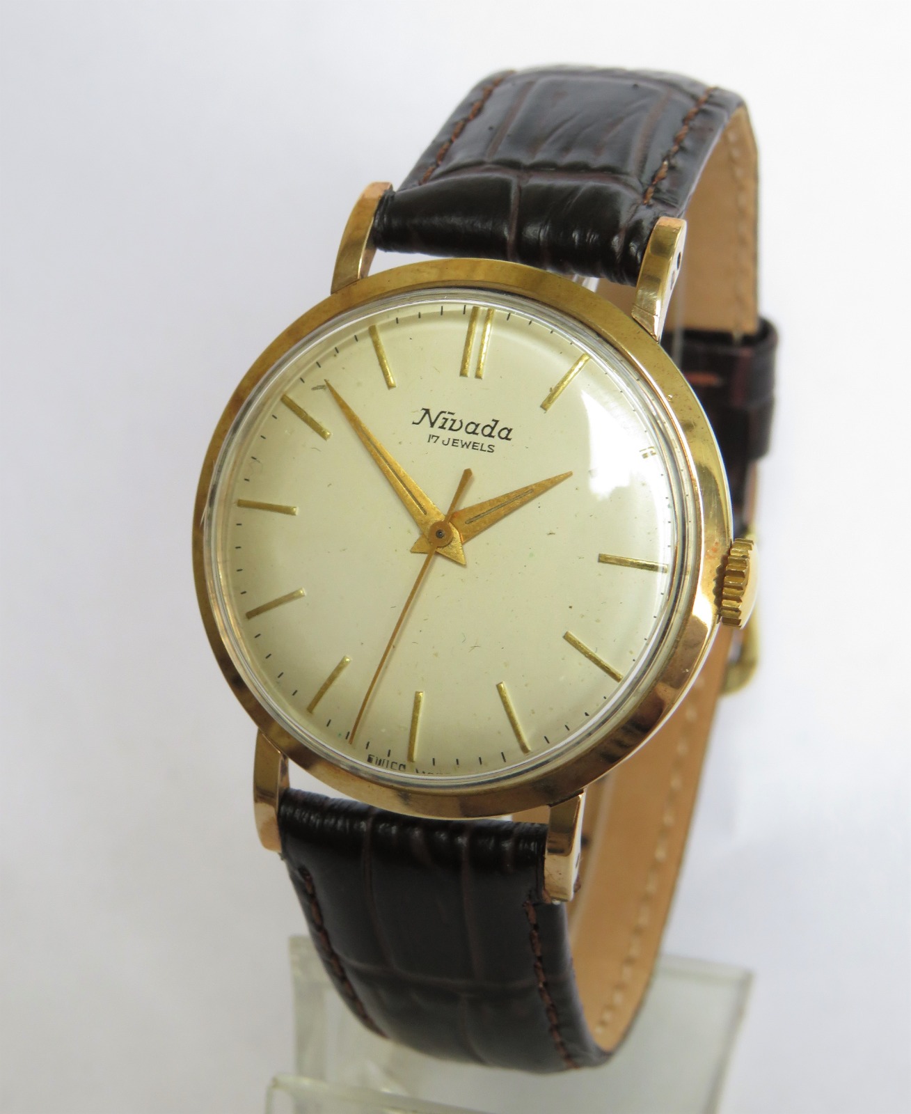 Gents 9ct Gold Nivada Wrist Watch, 1959