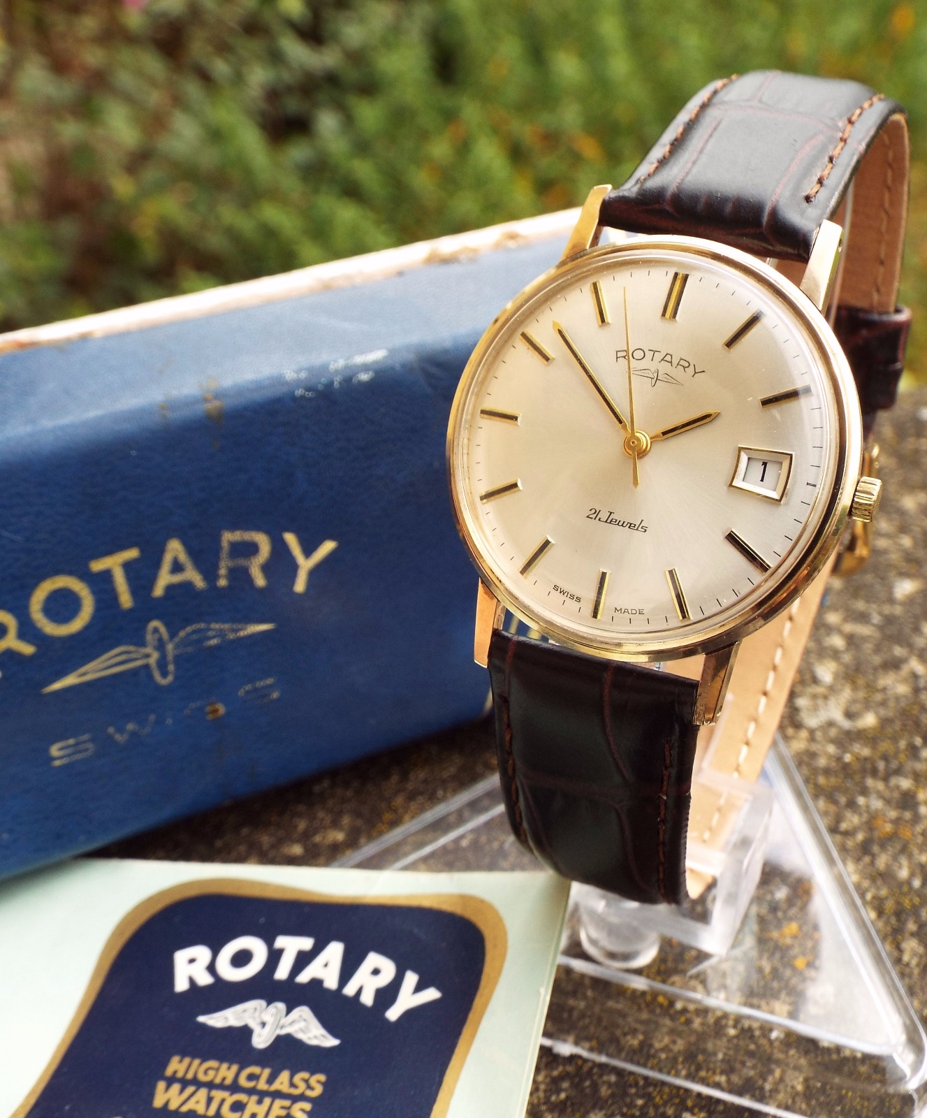 Gents 9ct Gold Rotary Wrist Watch, 1967 with Box & Papers