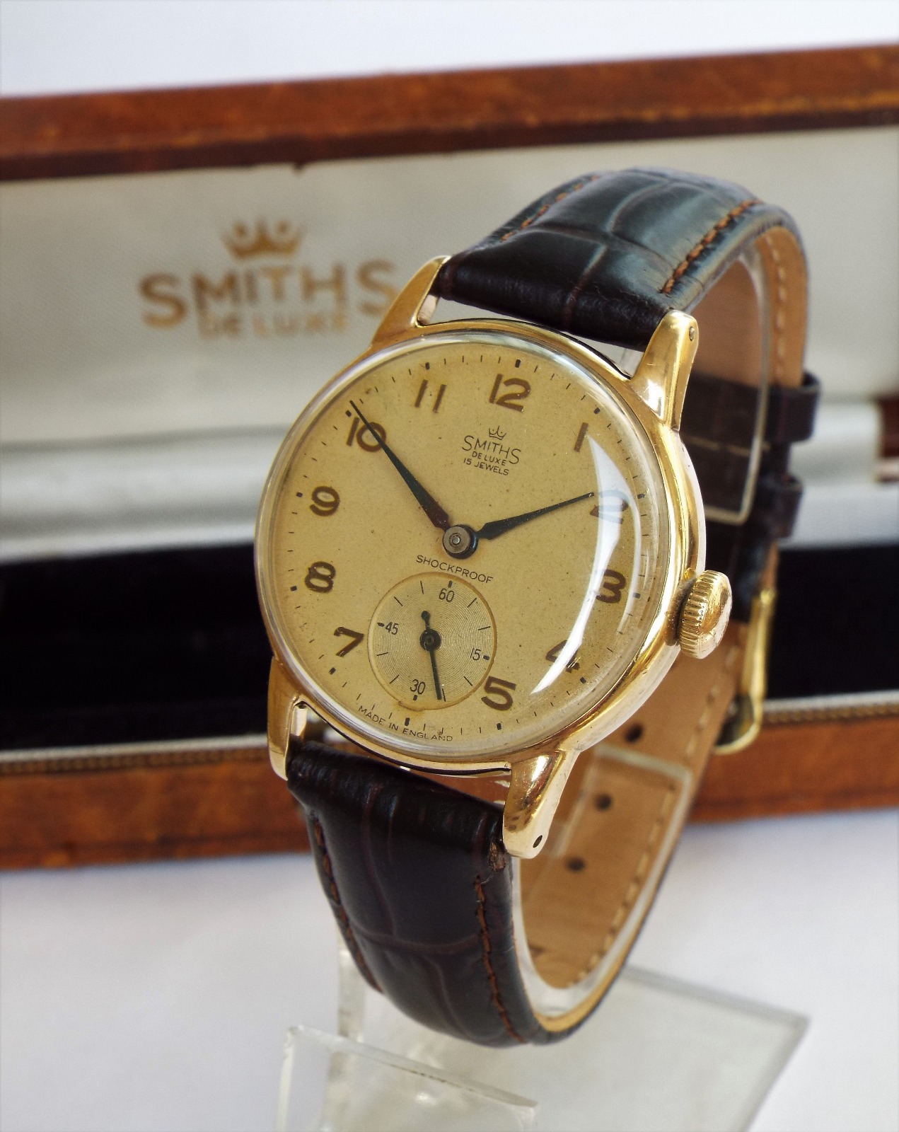 Gents 9ct Gold Smiths De Luxe Watch, 1959, Boxed