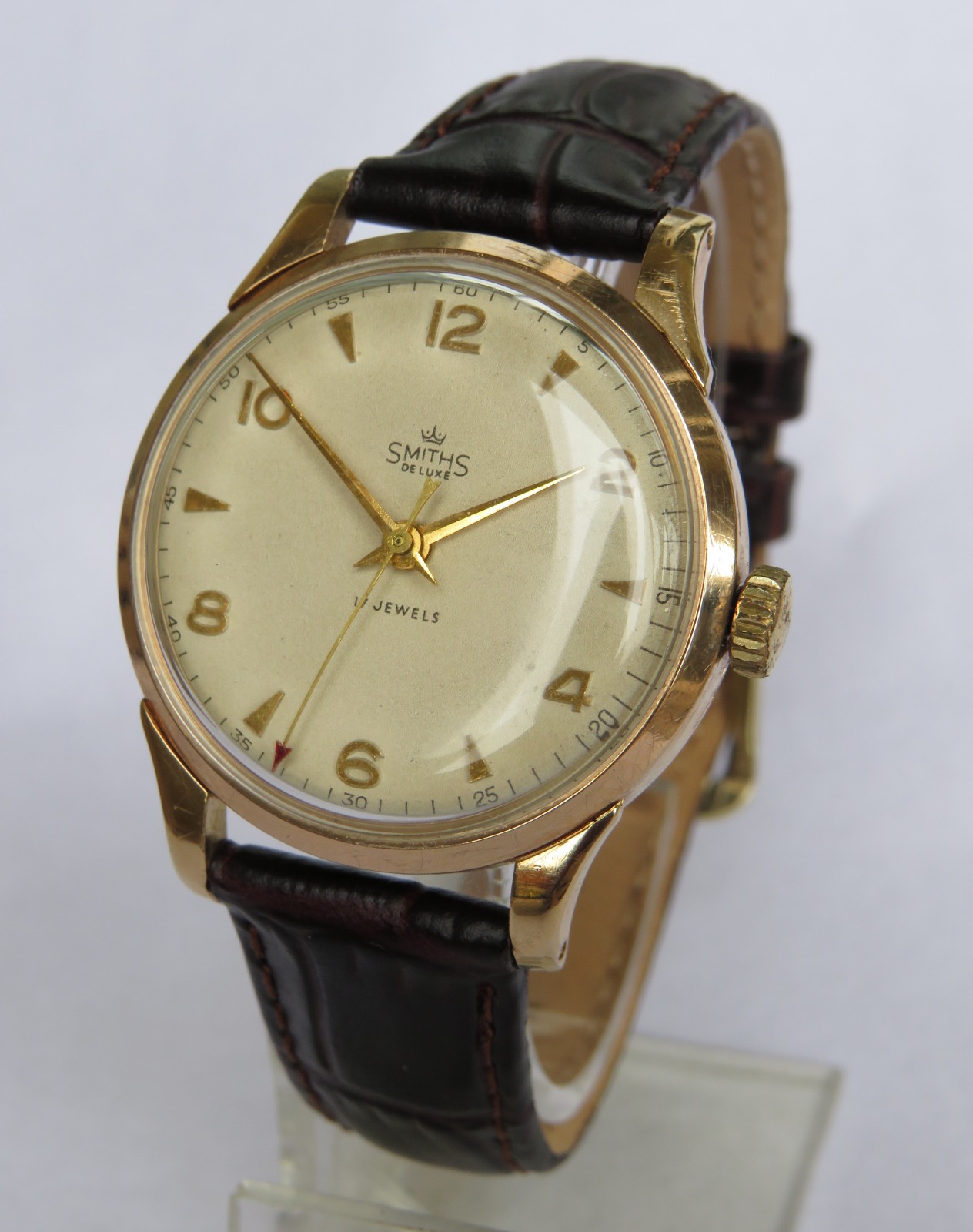 Gents 9ct Gold Smiths De Luxe Wrist Watch, 1955