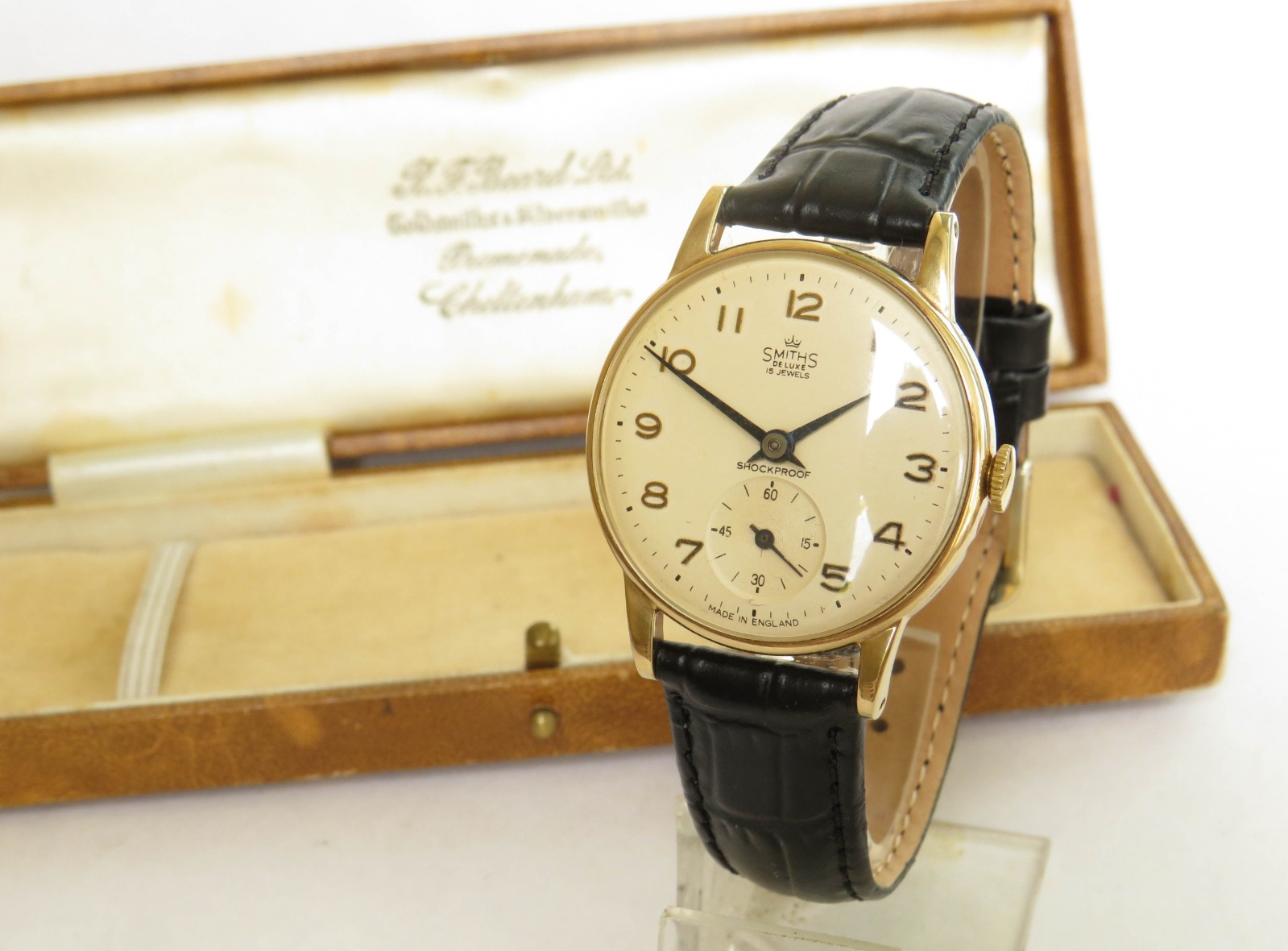 Gents 9ct Gold Smiths De Luxe Wrist Watch, 1963