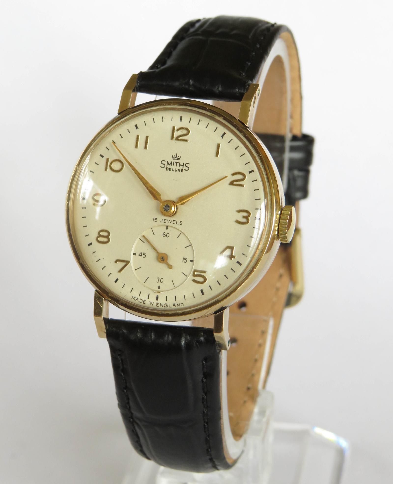 Gents 9ct Gold Smiths De Luxe Wristwatch, 1955