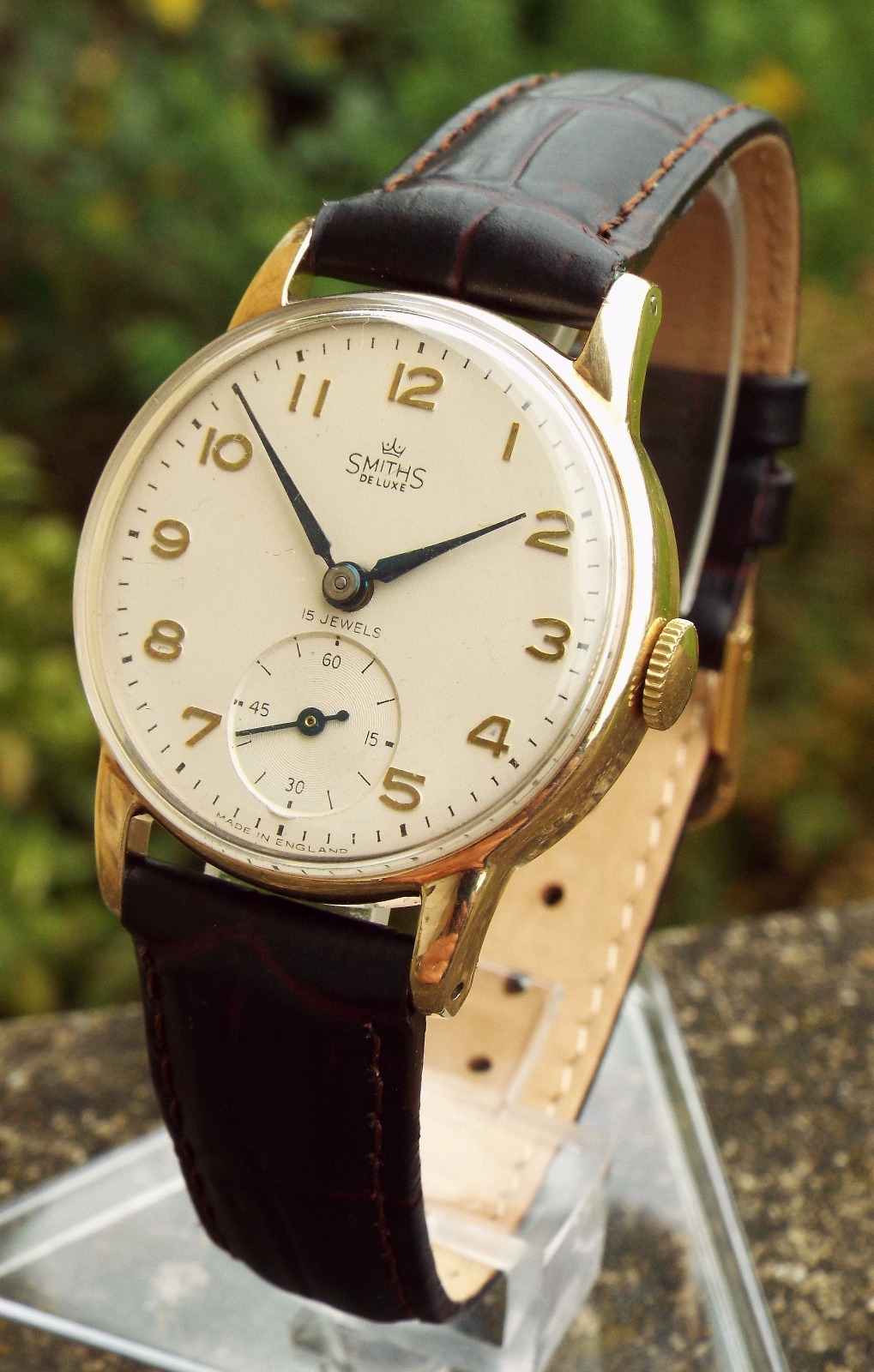 Gents 9ct Gold Smiths De Luxe Wristwatch, 1959