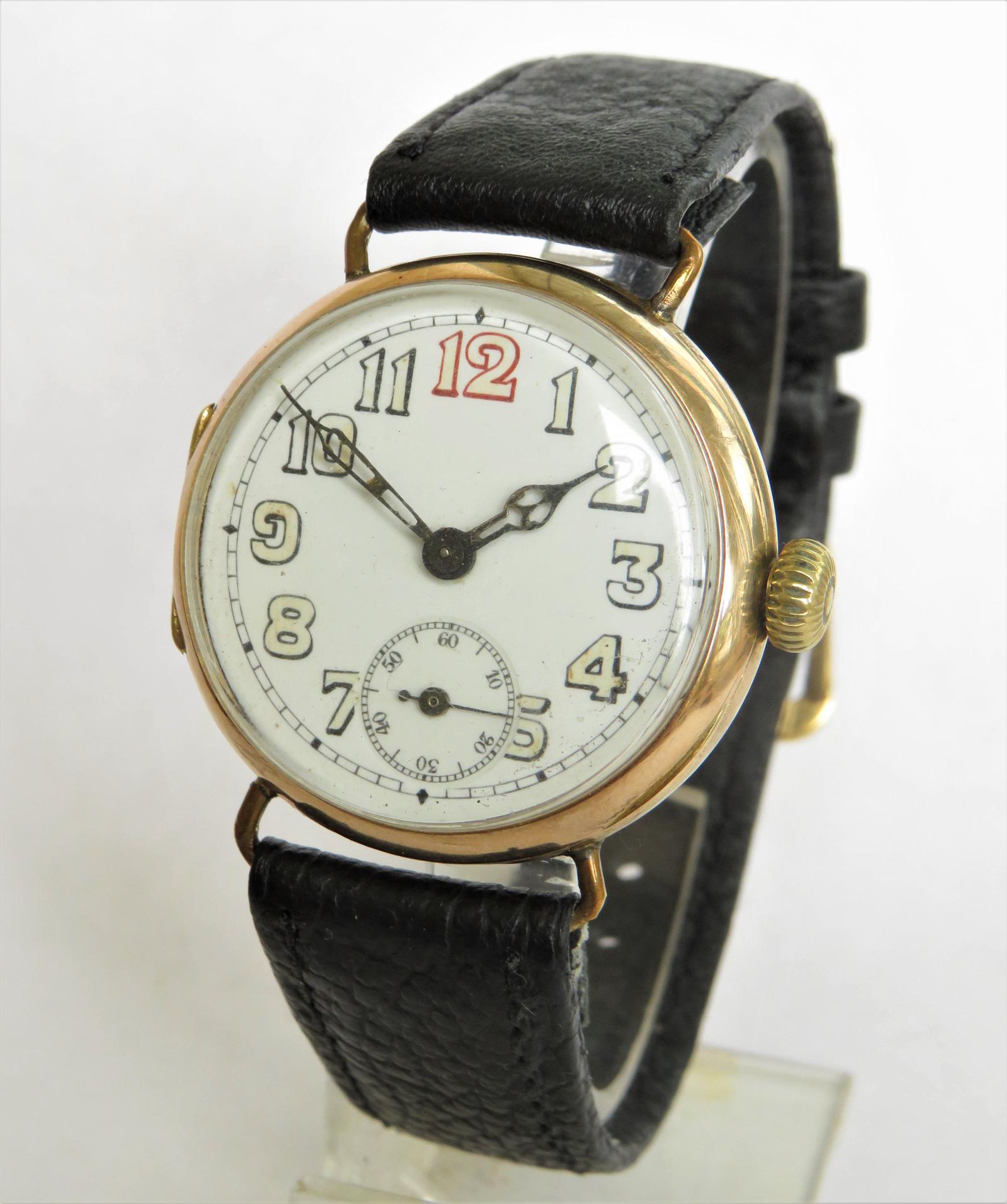 Gents 9ct gold trench watch, 1914