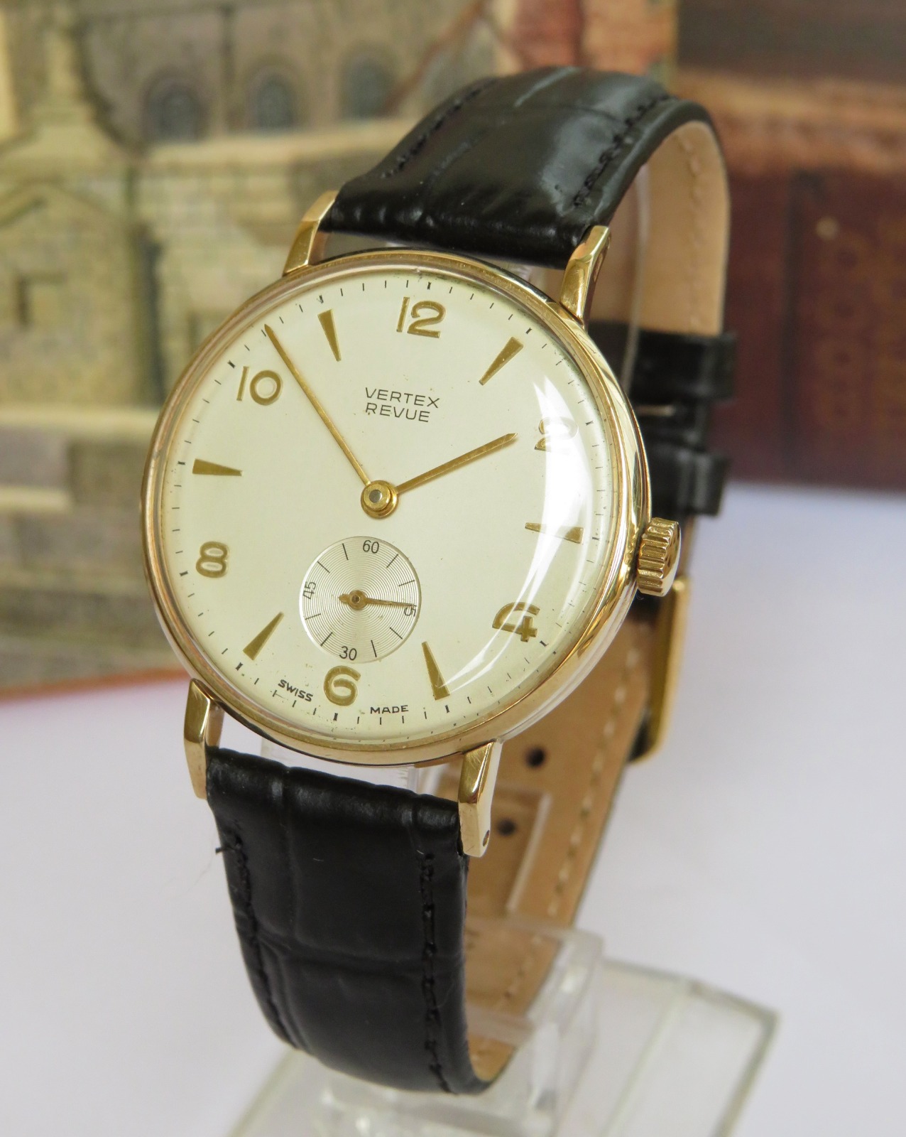 Gents 9ct Gold Vertex Revue Wrist Watch, 1965