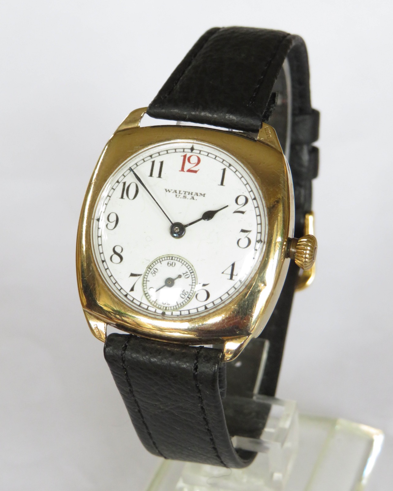 Gents 9ct Gold Waltham Cushion Cased Wrist Watch, 1935