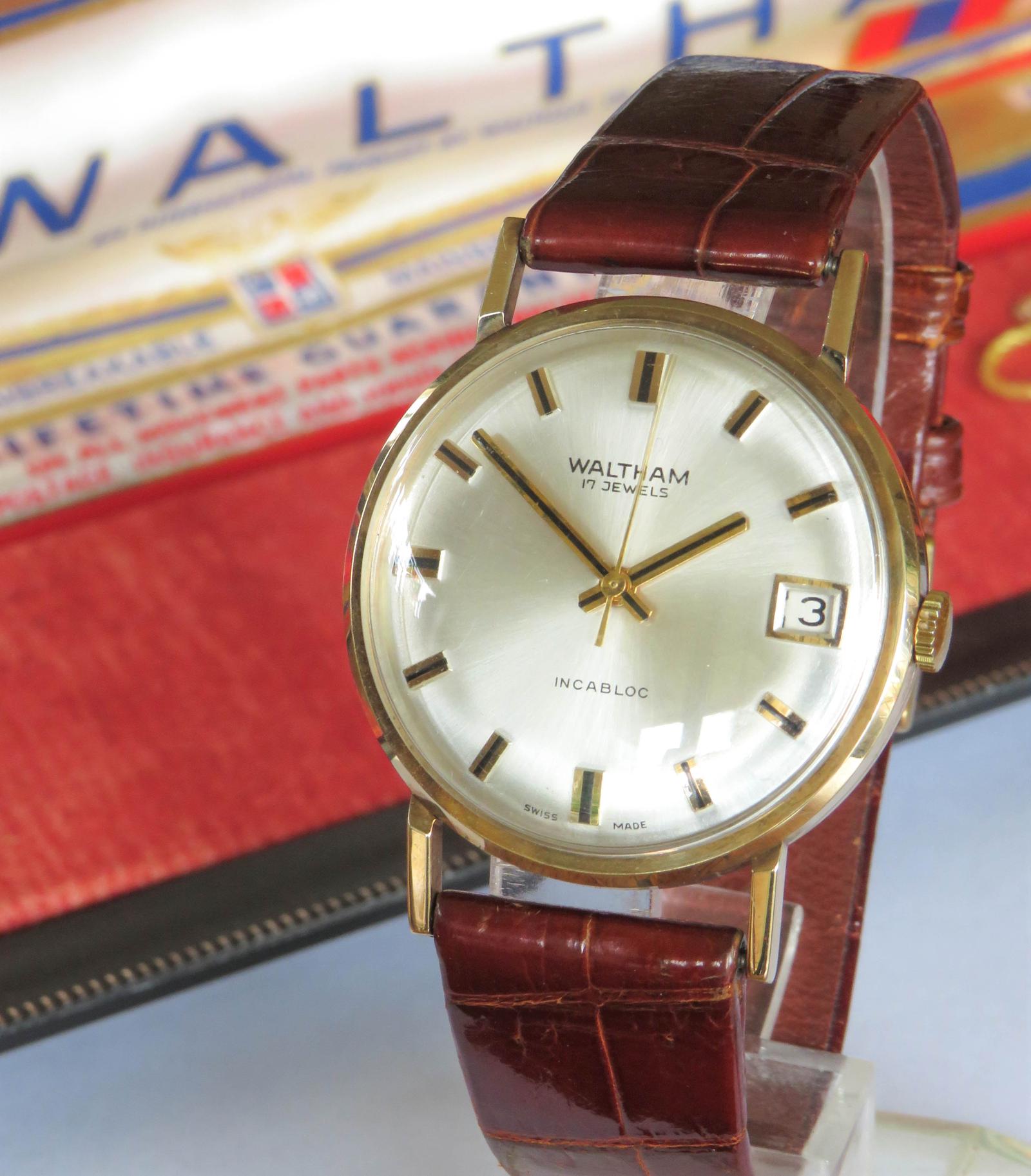 Gents 9ct Gold Waltham Wrist Watch, Boxed