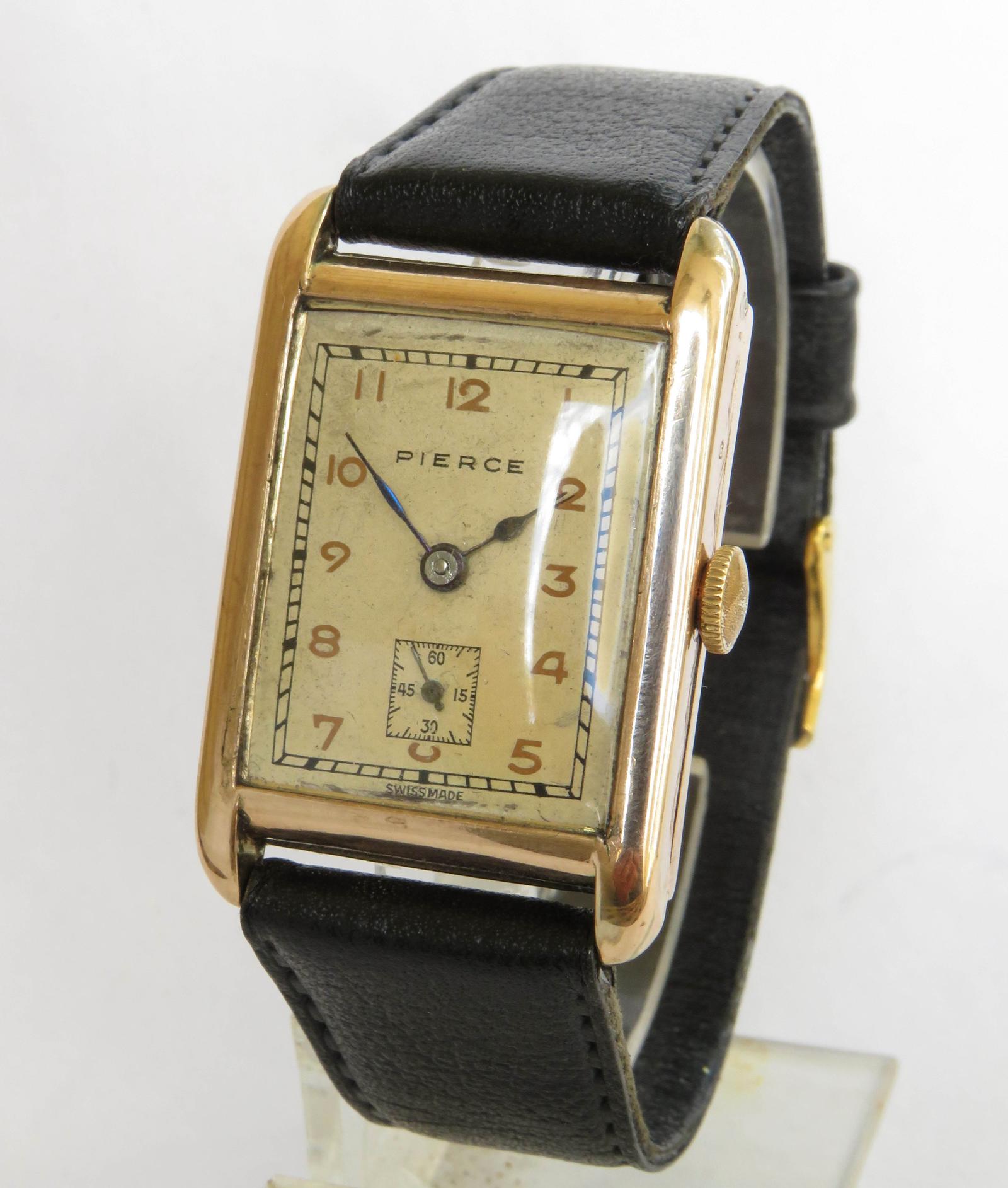 Gents 9ct rose gold 1930s Pierce wrist watch