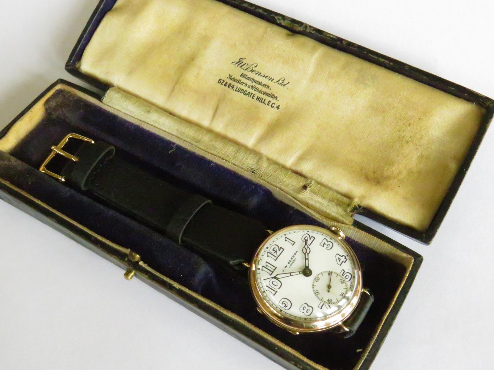 Gents Antique WW1 9ct Gold Wrist Watch, J W Benson