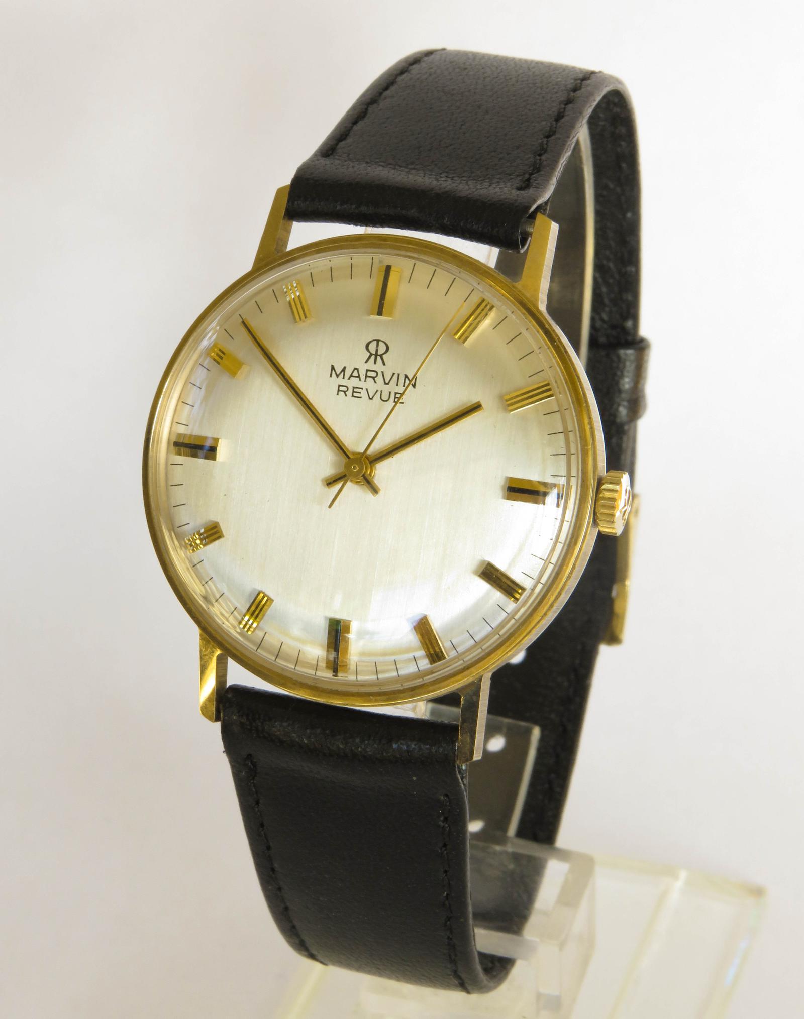 Gents boxed 9ct gold Marvin Revue wristwatch