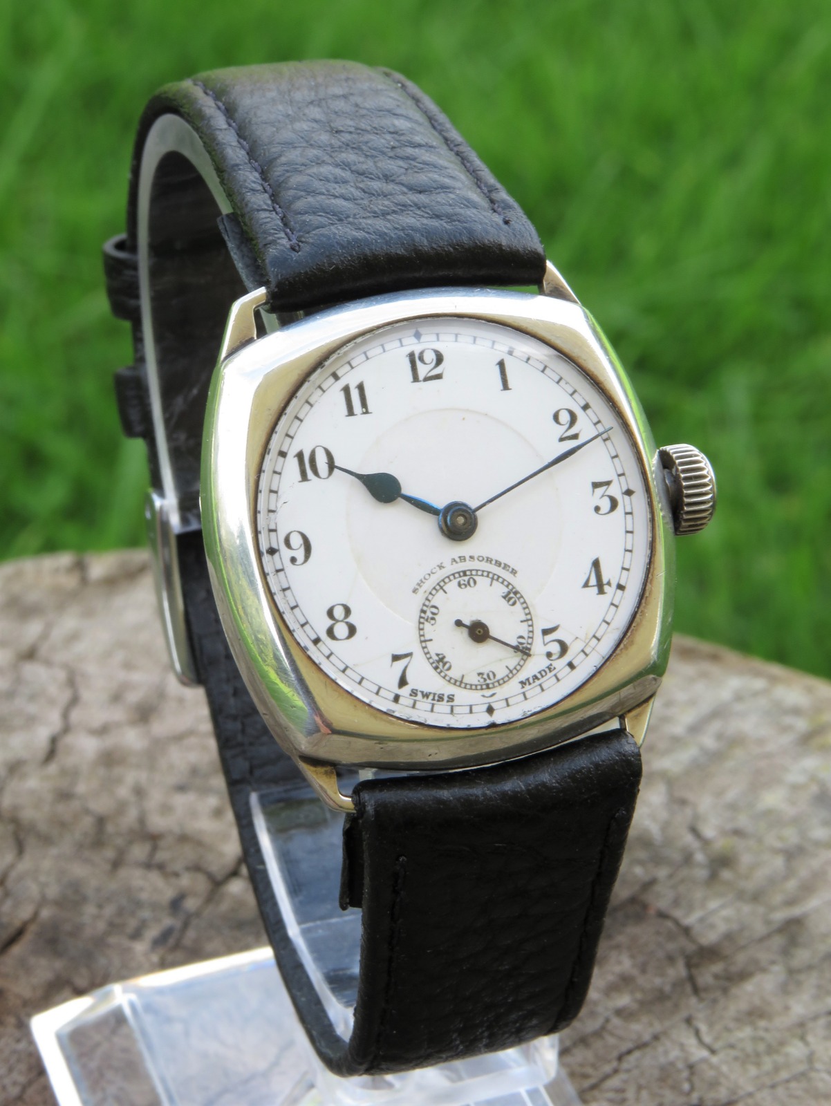 Gents Silver Cushion Cased Wrist Watch, 1927