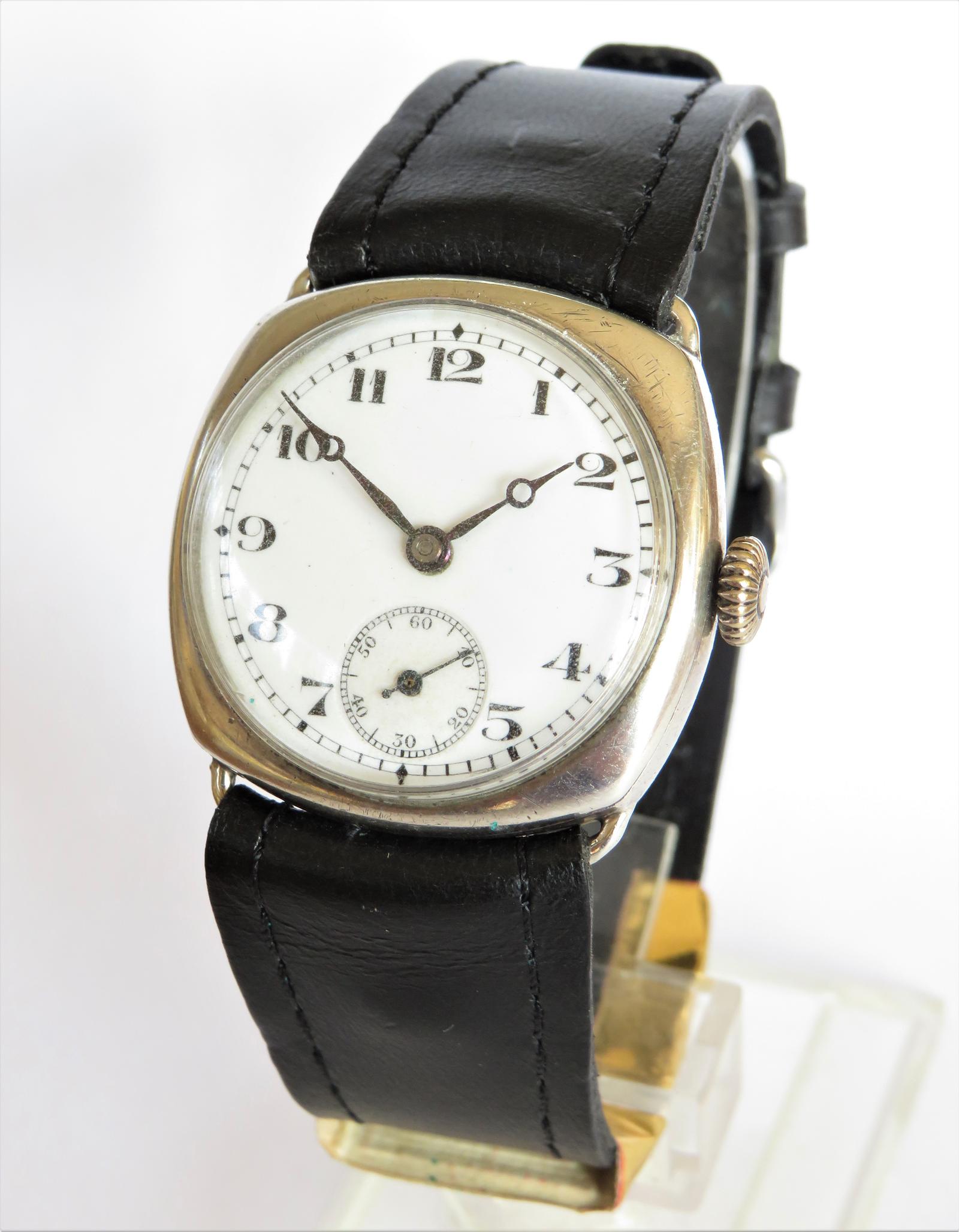 Gents silver cushion cased wrist watch, 1927