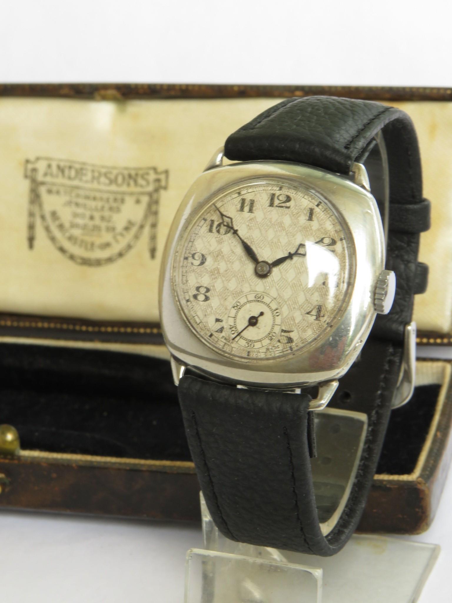 Gents Silver Cushion Cased Wrist Watch, 1930