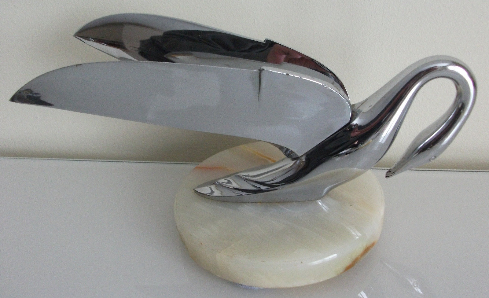 Genuine 1948 Packard American Car Mascot, Mounted on Circular Cream Marble Base