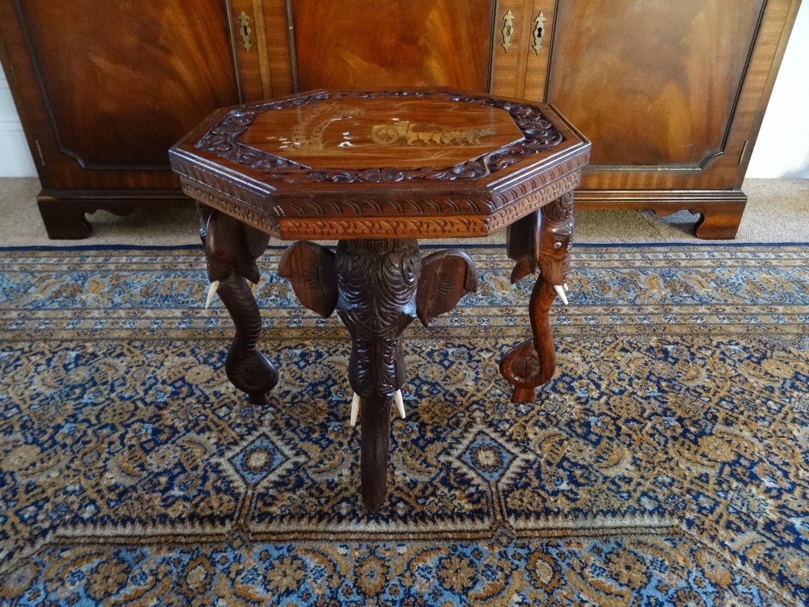 Genuine Antique Anglo Indian Oriental Rosewood Profusely Carved Elephant Table