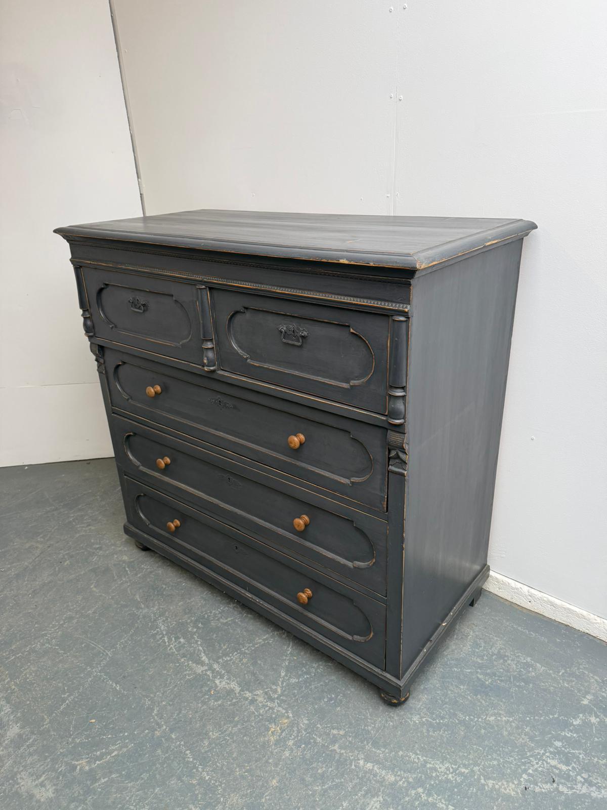 Genuine Antique Pine Victorian Light Grey Massive 5 Drawer Chest of Drawers