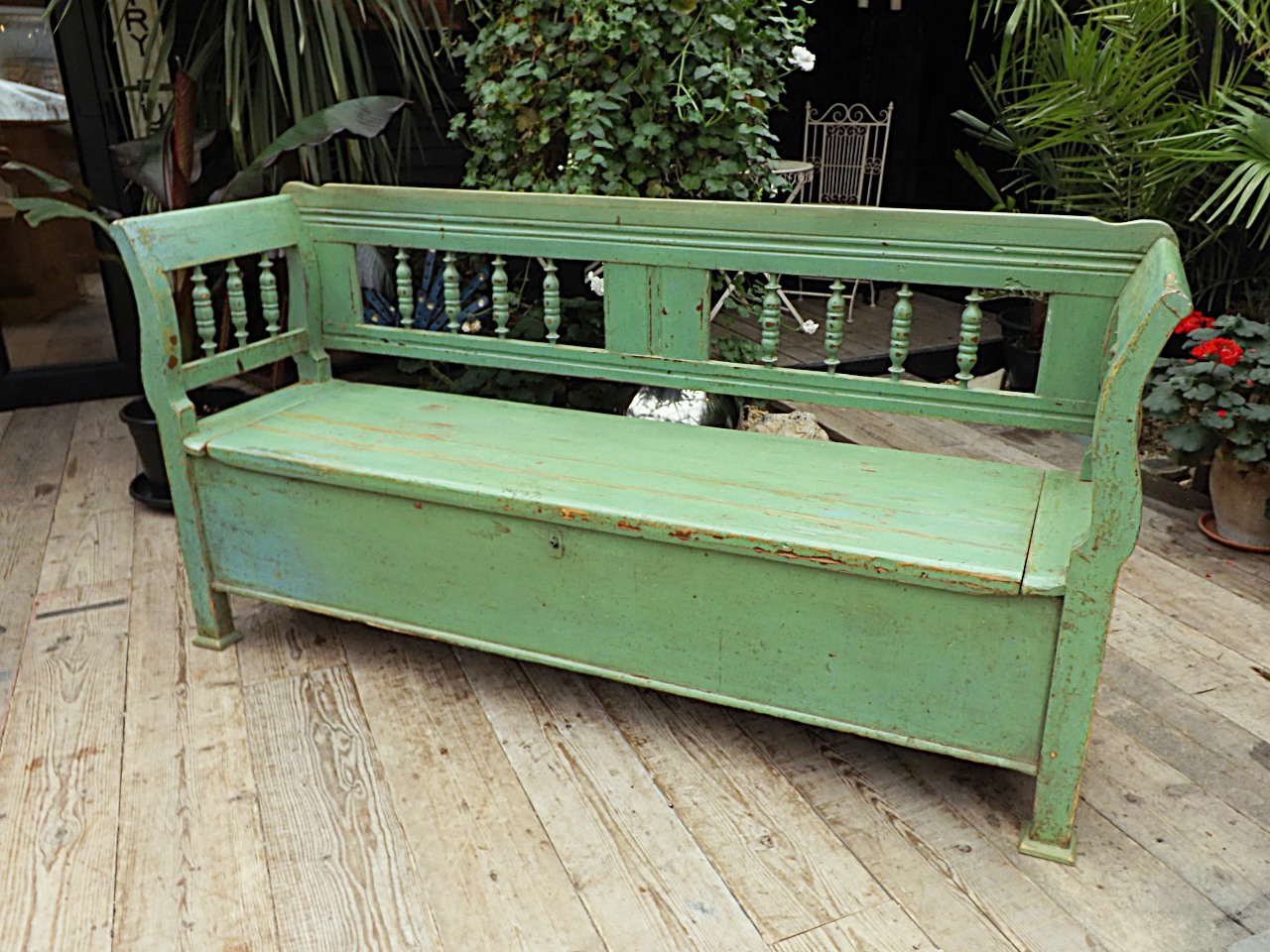 Genuine Old Antique Pine & Painted 'Hungarian' Bench Box / Storage Bench - Pew / Settle