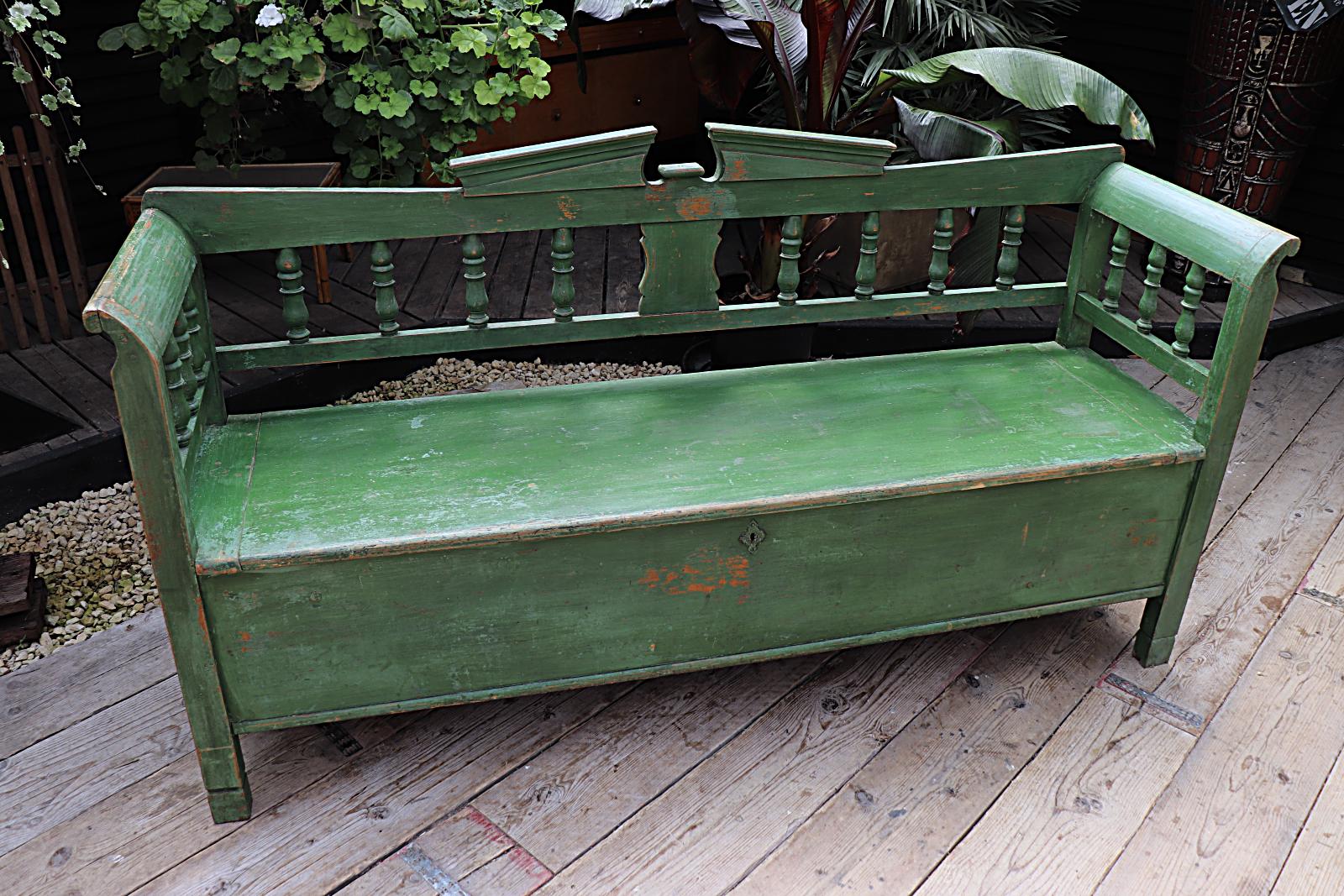 Genuine Old Pine / Green Painted Hungarian Box / Storage Bench / Settle - We Deliver!