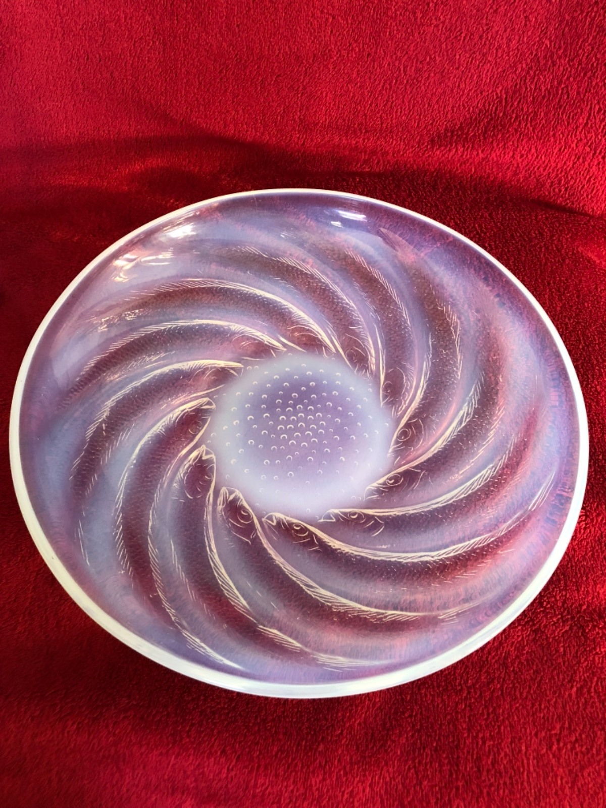 Genuine Rene Lalique Poissons 'Fish' Pattern Opalescent Glass Shallow Bowl
