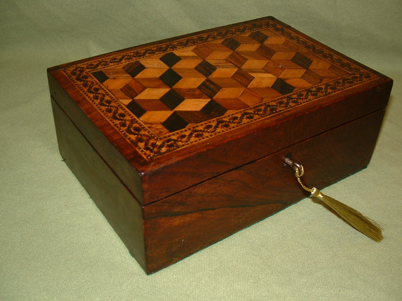Genuine Tunbridge Ware Tumbling Blocks + Mosaic Table – Jewellery Box c.1860