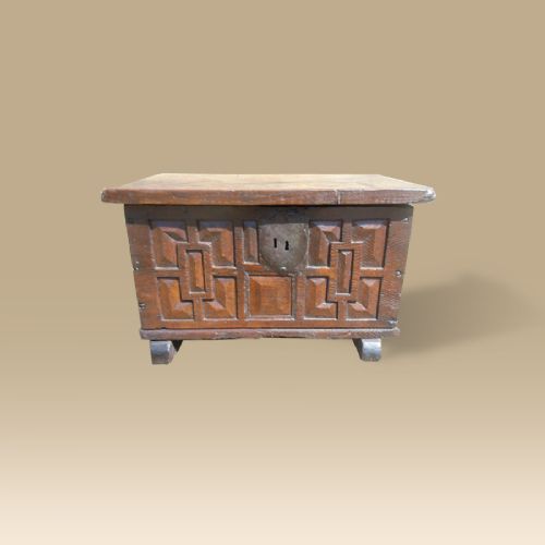 Geometrically Carved Small Gothic Oak & Chestnut Chest 16th Century
