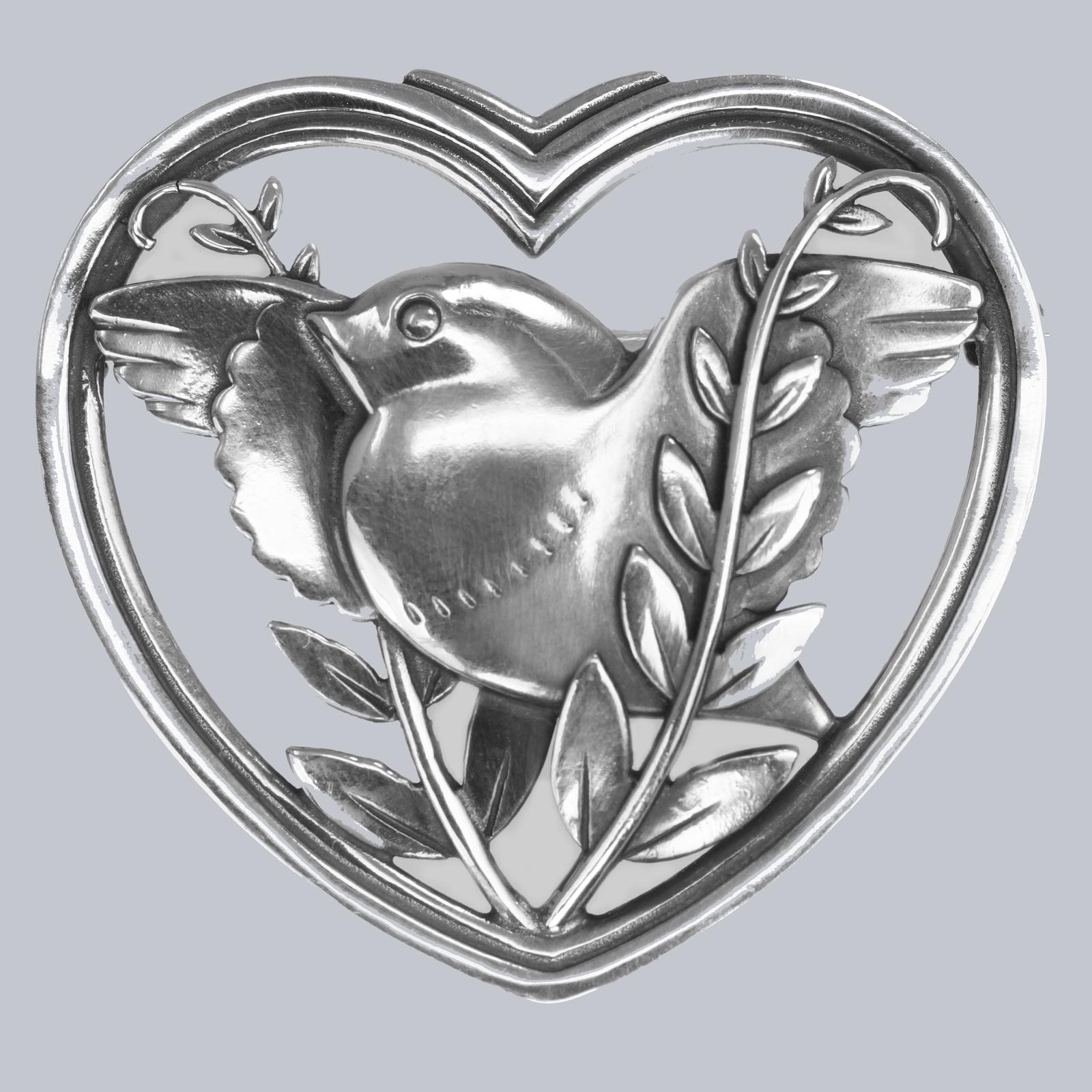 Georg Jensen Robin Heart Brooch Arno Malinowski Vintage 1930s/1940s Sterling Silver Bird 239 (1 of 6)