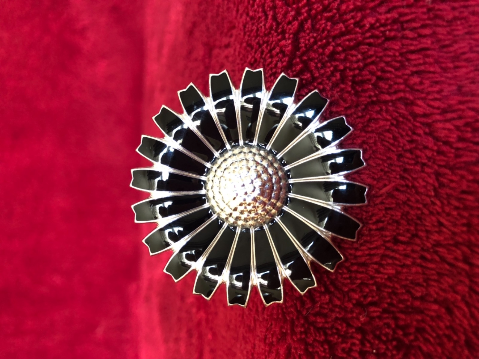 Georg Jensen Sterling Silver & Black Enamel Large Daisy Ring