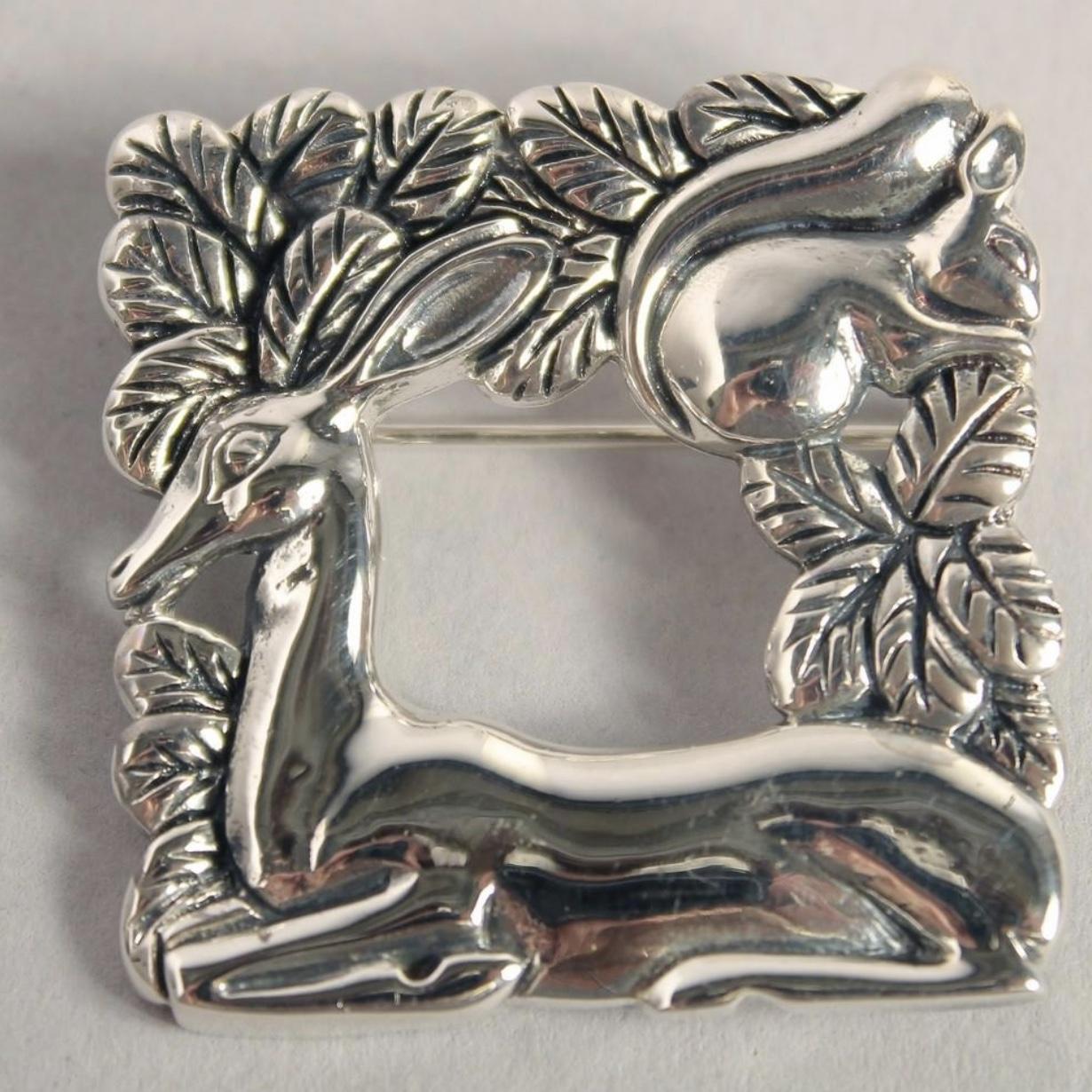 Georg Jensen Style Sterling Danish Silver Brooch Deer & Squirrel Denmark