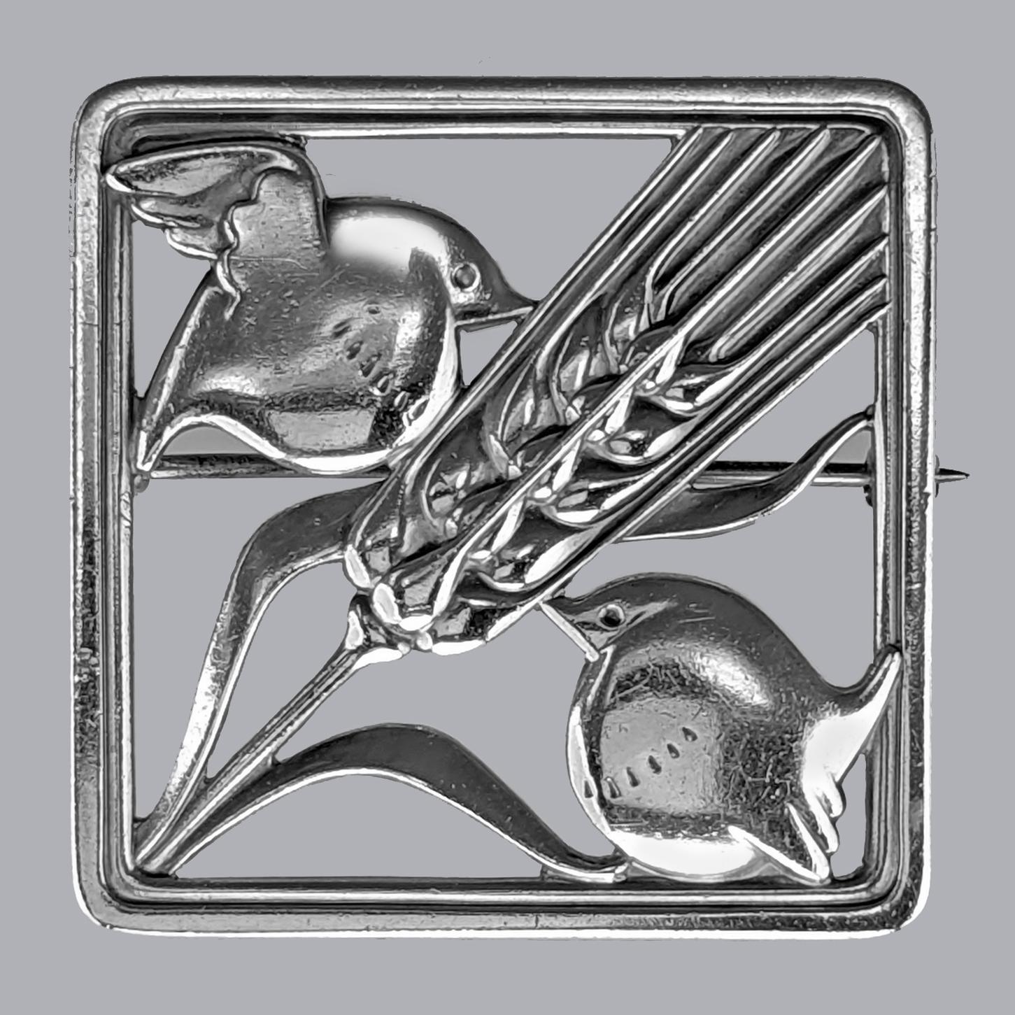 Georg Jensen Wrens in Barley / Wheat Brooch Arno Malinowski Vintage Silver 250