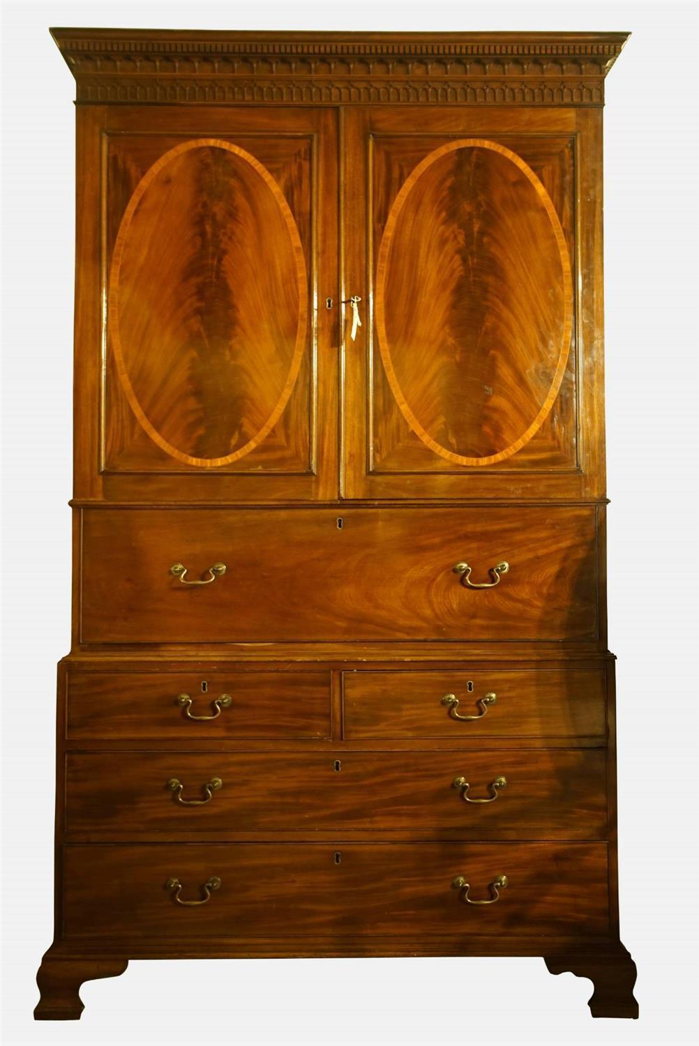George 111 Inlaid Mahogany Linen Press with Inlaid Oval Panelled Doors and Secretaire Drawer (1 of 10)