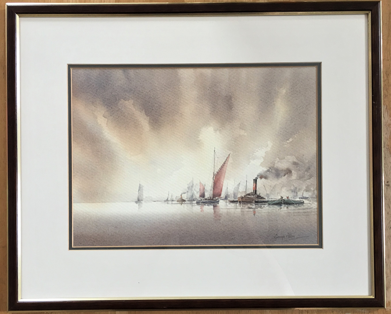 George Allen, Original Signed Watercolour Painting of Boats at Sea 'Ref 2'